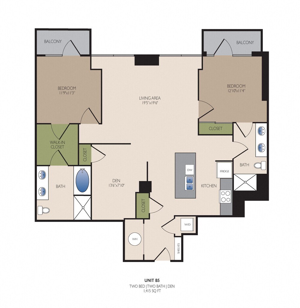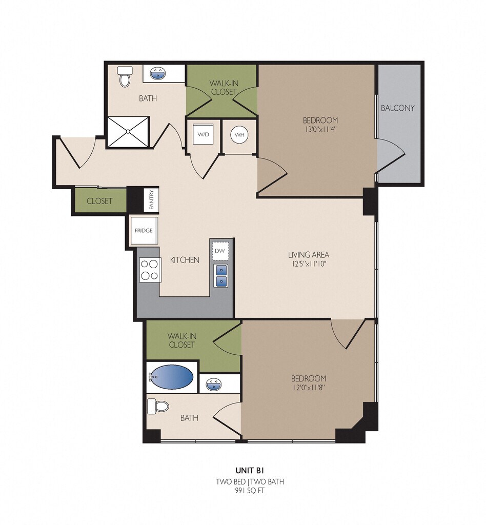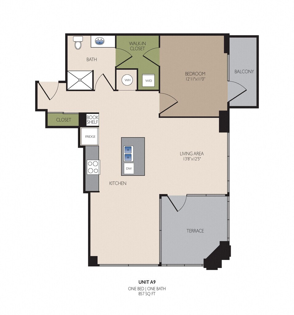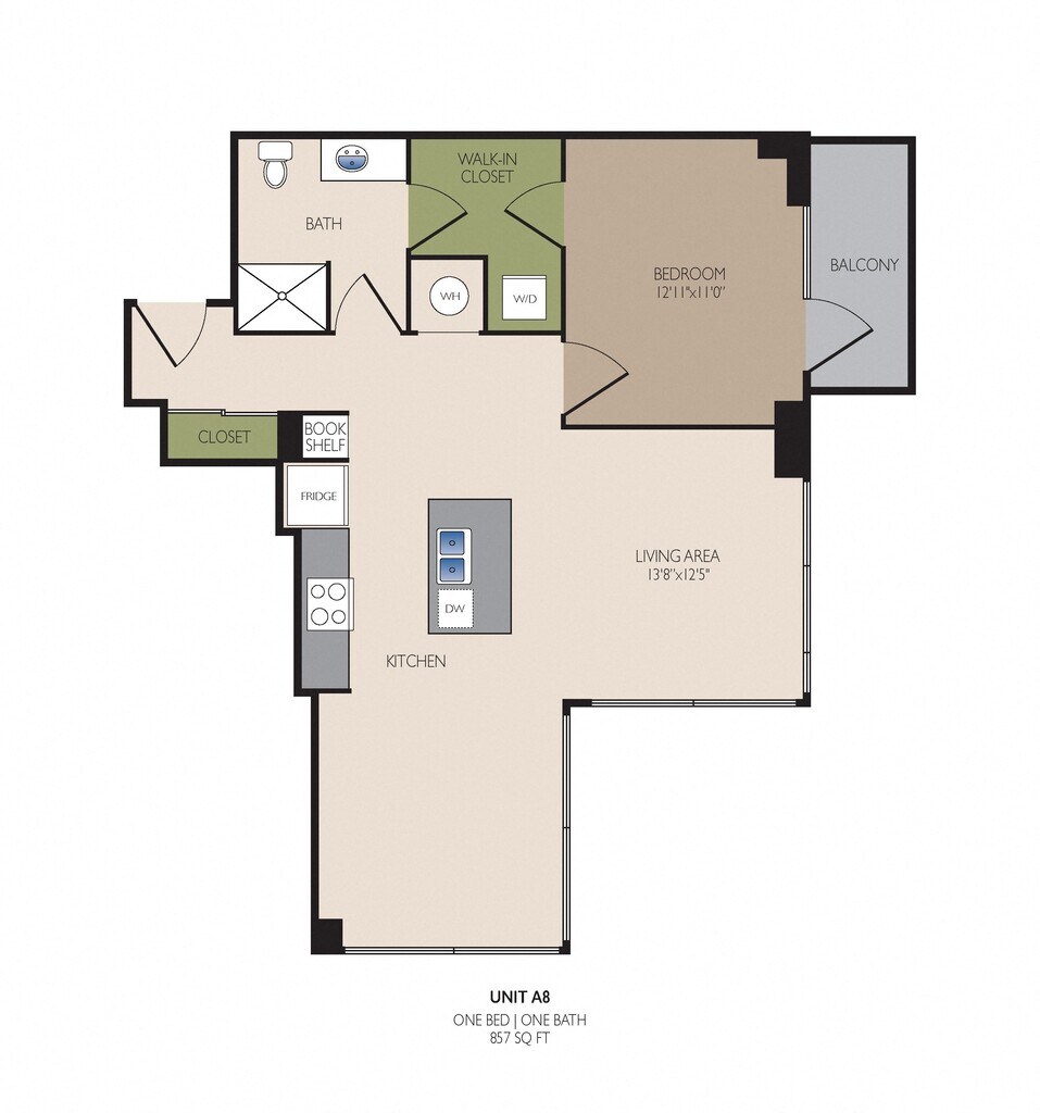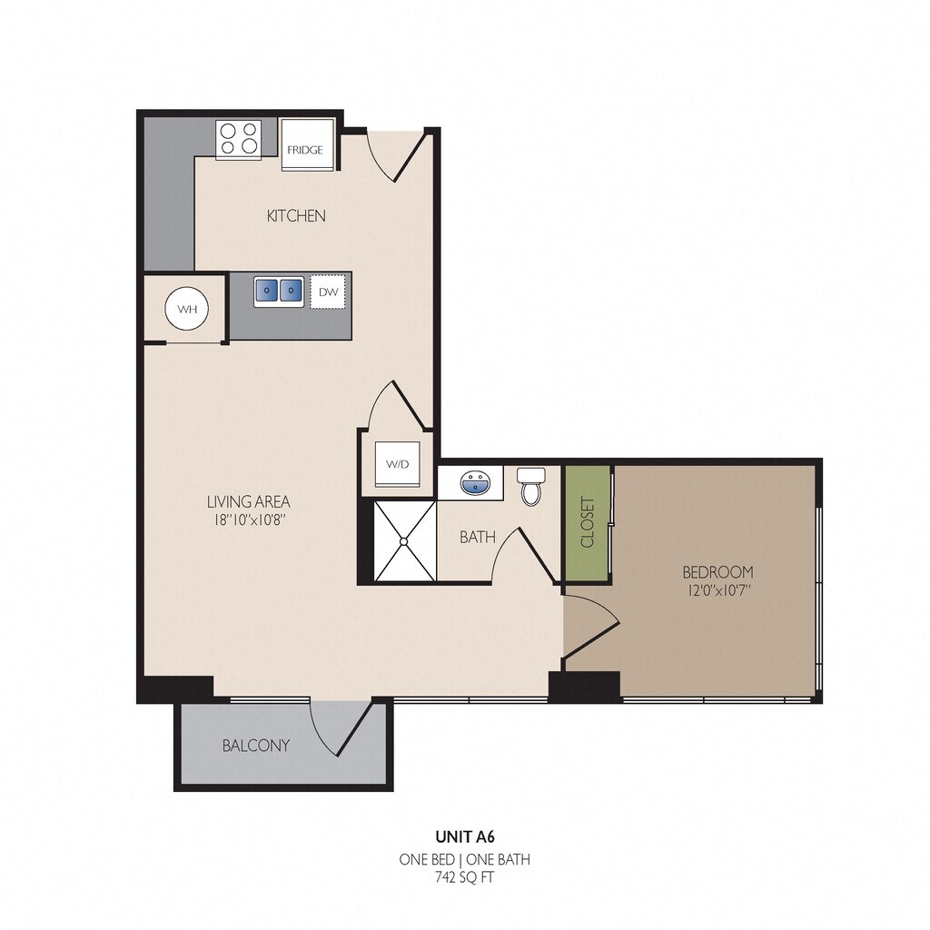 Modelo de apartamento: A71 Dormitorio, 1 Baño, 742 sq ftDisponible January 2, 2026![]()