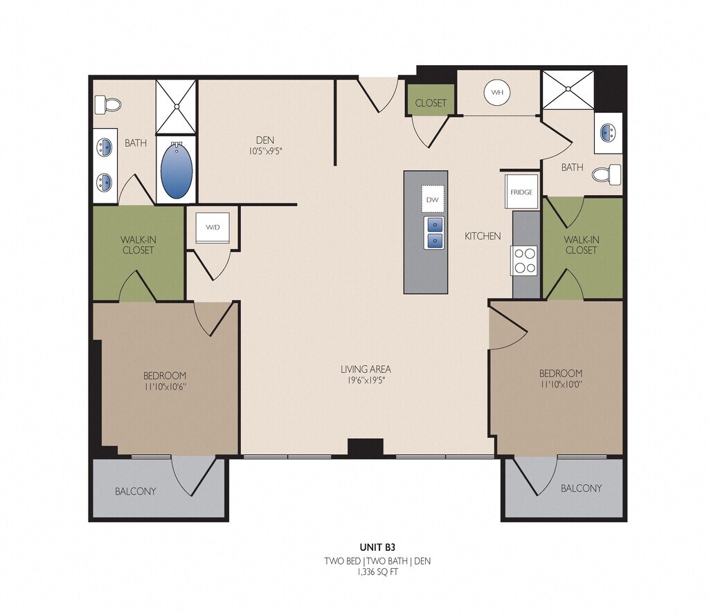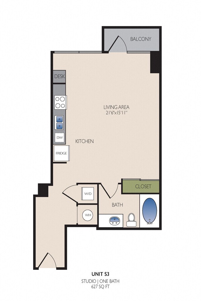 Modelo de apartamento: S3Estudio, 1 Baño, 627 sq ftDisponible Ahora![]()