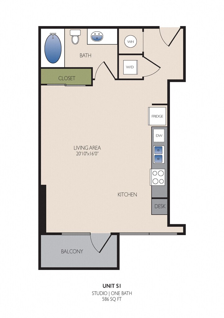 Modelo de apartamento: S1Estudio, 1 Baño, 586 sq ftDisponible Ahora![]()