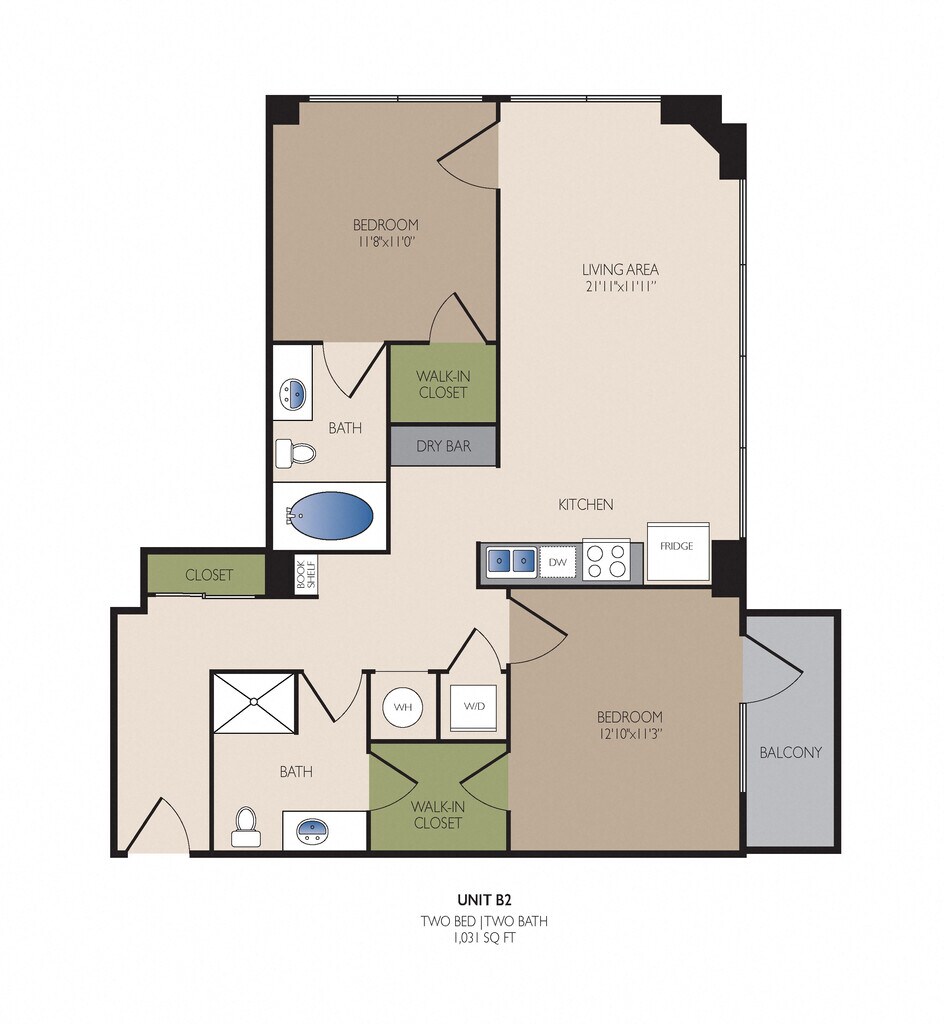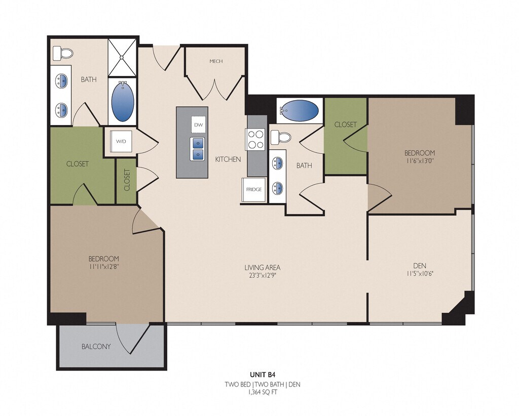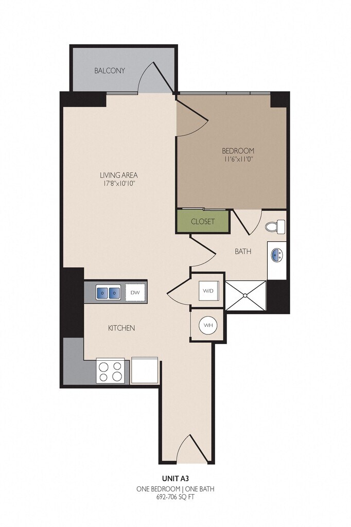 1 Dormitorio, 1 Baño, 706 pies²Disponible AhoraGalería del Modelo