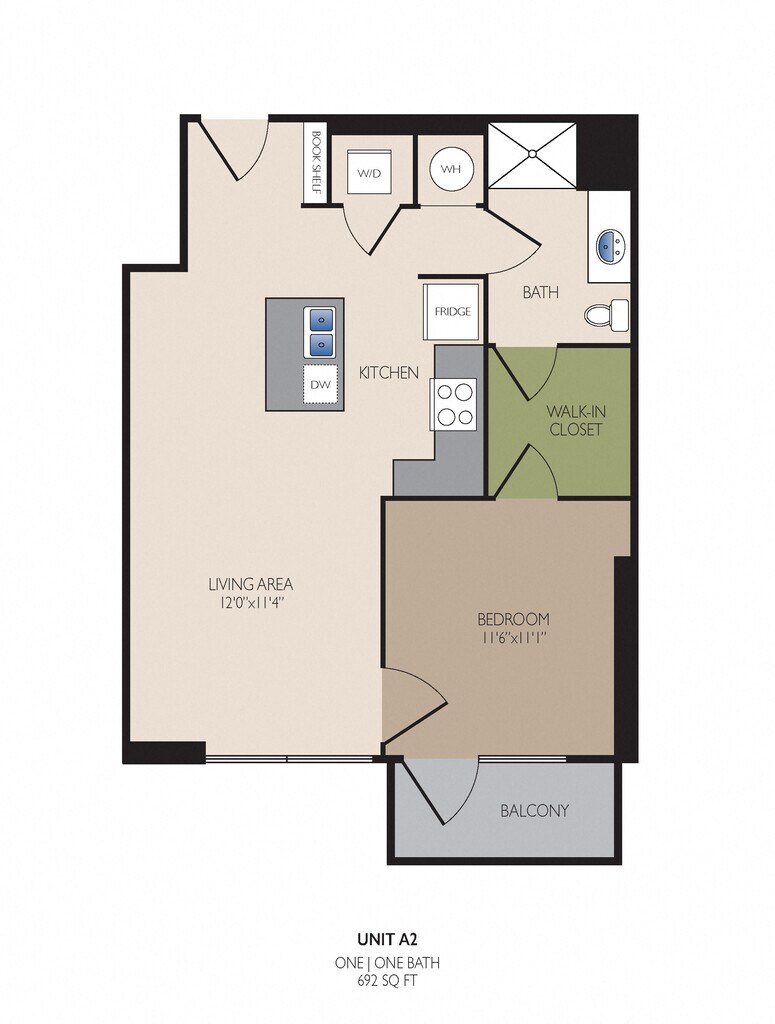 Modelo de apartamento: A31 Dormitorio, 1 Baño, 692 sq ftDisponible Ahora![]()