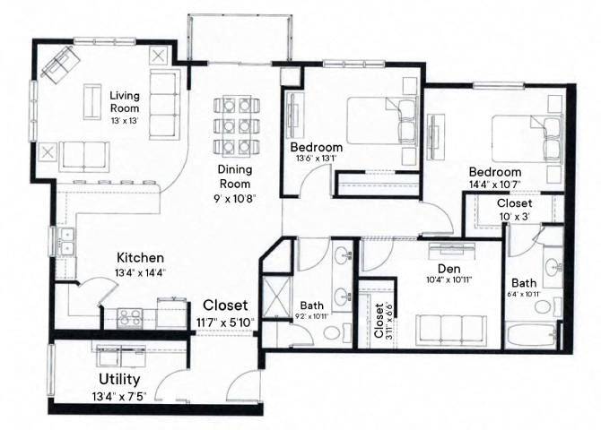 Modelo de apartamento: BuckridgeDesde $1,5951 Dormitorio, 1 Baño, 768 sq ftDisponible Ahora![]()
