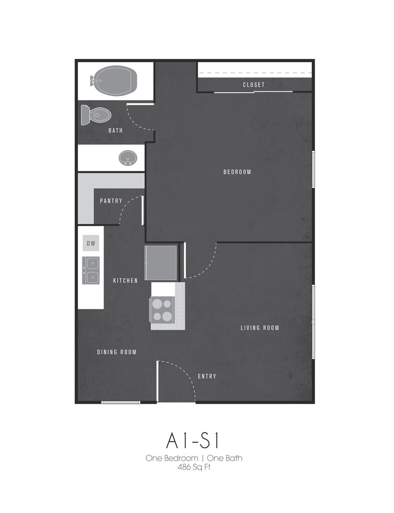 1 Dormitorio, 1 Baño, 486 pies²Disponible AhoraGalería del Modelo
