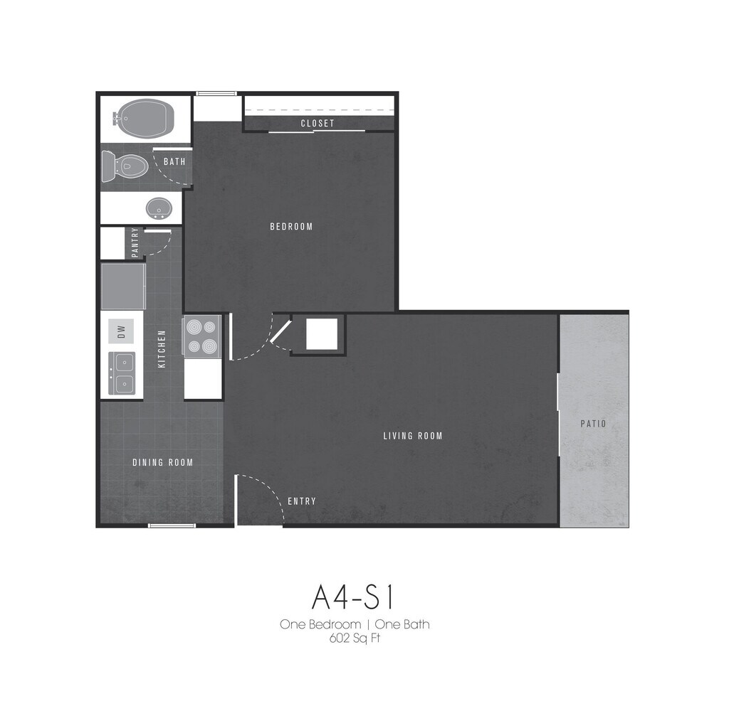 1 Dormitorio, 1 Baño, 602 pies²Galería del Modelo