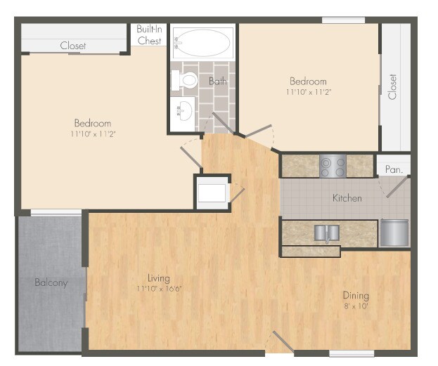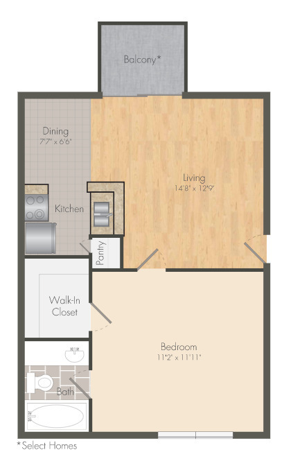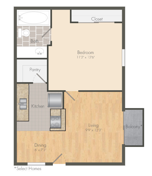 Modelo de apartamento: A2Desde $8261 Dormitorio, 1 Baño, 550 sq ftNo Disponible![]()