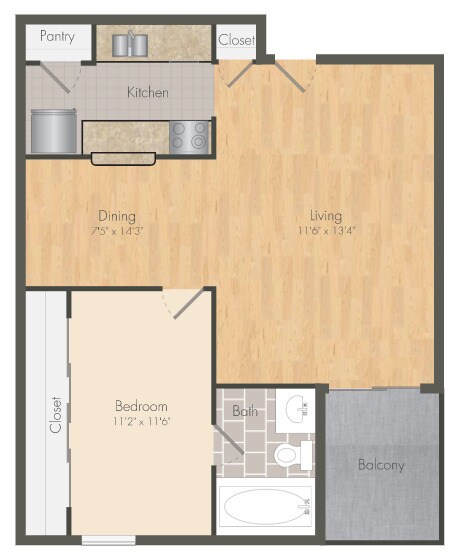 Estudio, 1 Baño, 450 pies²Disponible AhoraEl más grandeEsta opción tiene las unidades más grandes para este modeloGalería del Modelo
