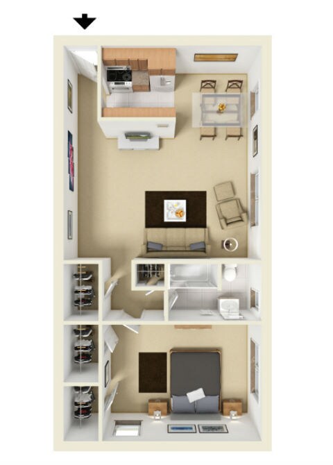 1 Dormitorio, 1 Baño, 700 pies²Disponible AhoraGalería del Modelo