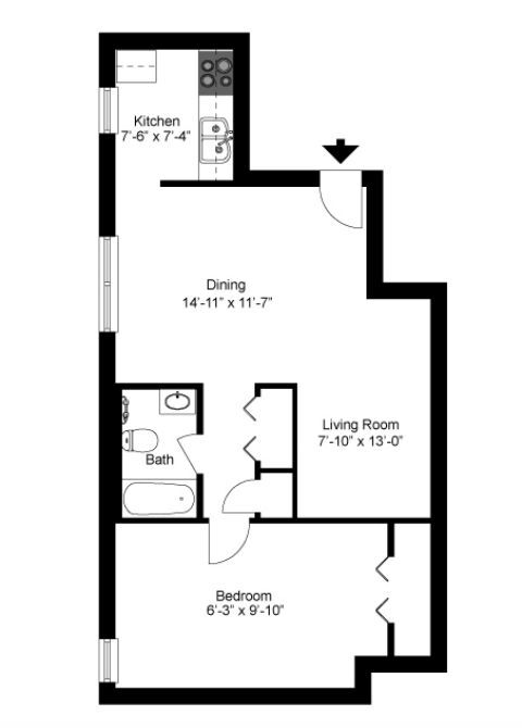 Modelo de apartamento: MapleLlame para Precios1 Dormitorio, 1 Baño, 610 sq ftNo Disponible![]()