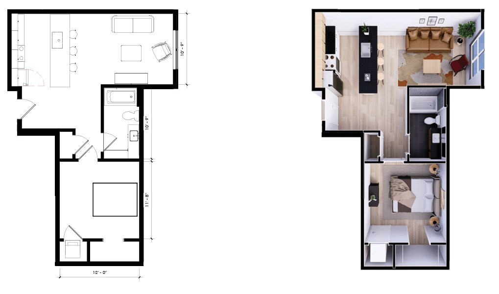 1 Dormitorio, 1 Baño, 647-661 pies²Disponible AhoraGalería del Modelo