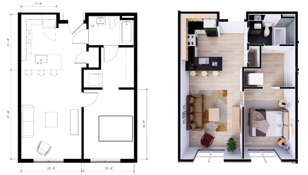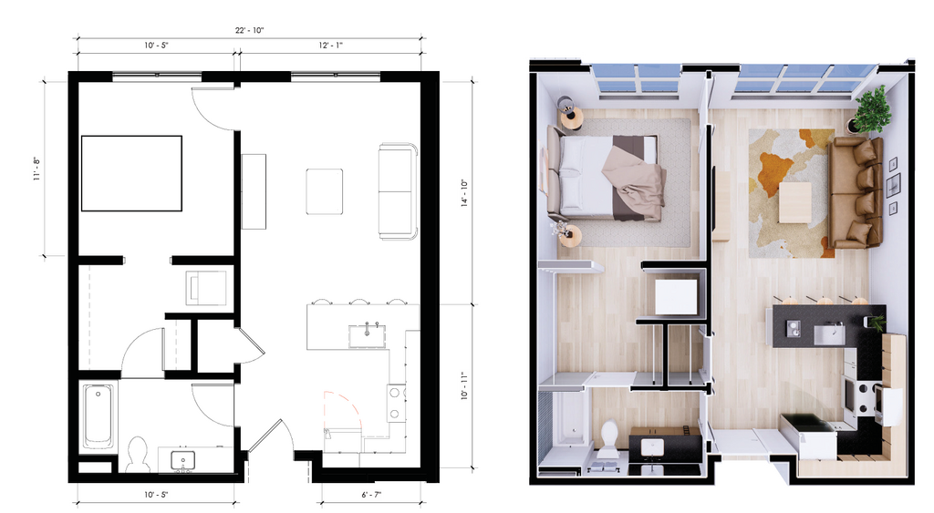 1 Dormitorio, 1 Baño, 631 pies²Disponible AhoraGalería del Modelo