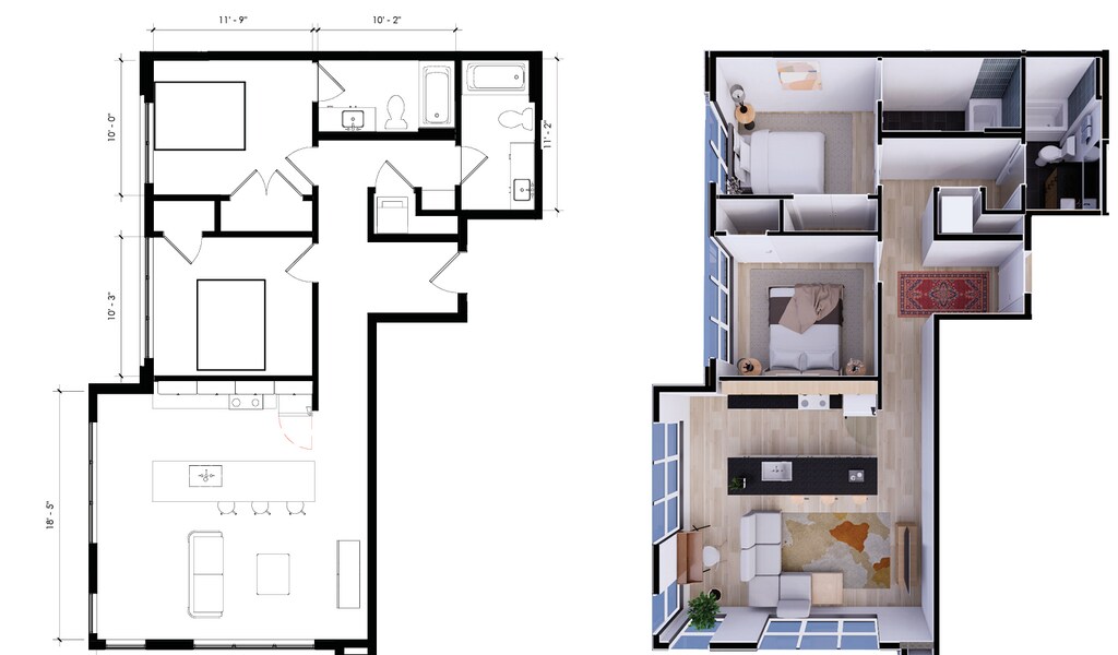 1 Dormitorio, 1 Baño, 666 pies²Disponible AhoraGalería del Modelo
