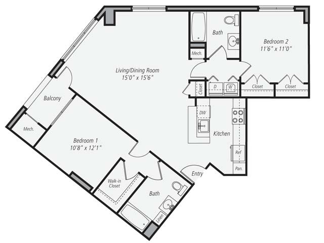 Modelo de apartamento: B12 Dormitorios, 1 Baño, 999 sq ftDisponible Ahora![]()
