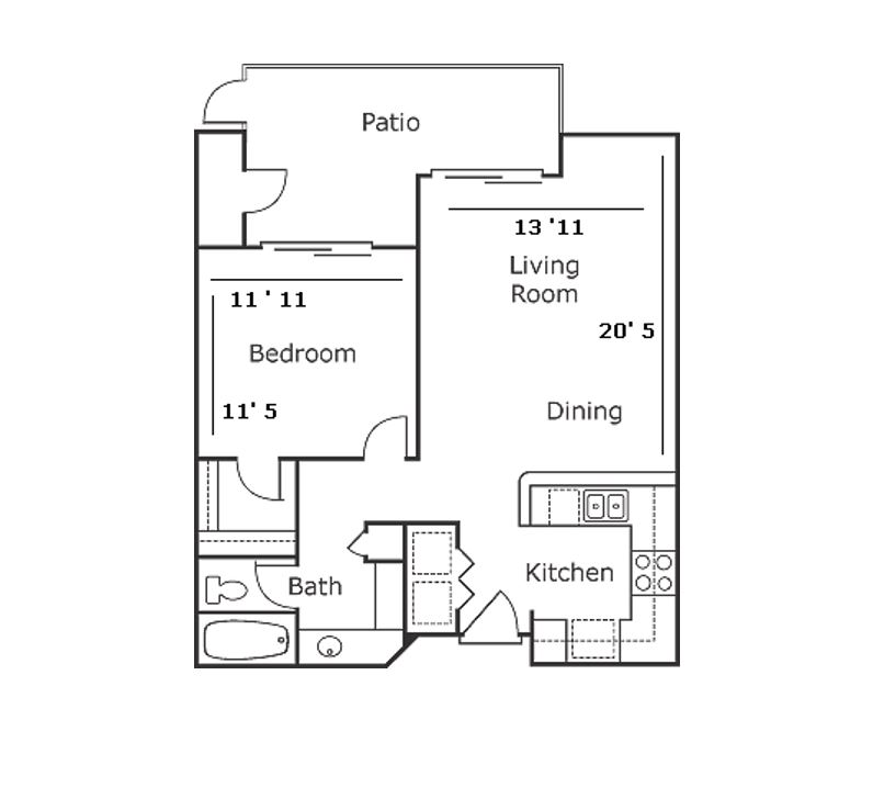 Modelo de apartamento: Plan A1 Dormitorio, 1 Baño, 650 sq ftDisponible Ahora![]()