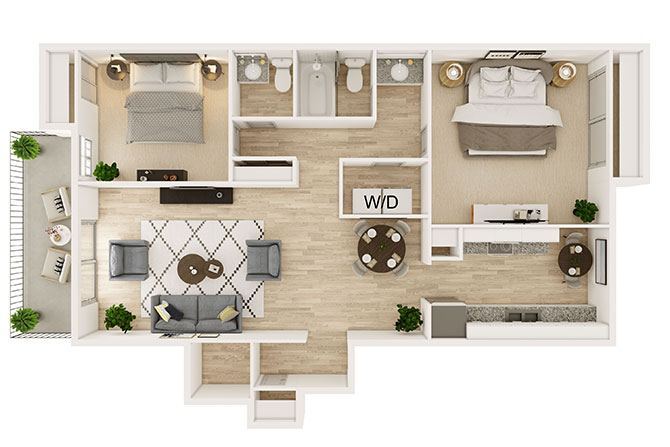 1 Dormitorio, 1 Baño, 1000 pies²Disponible AhoraGalería del Modelo