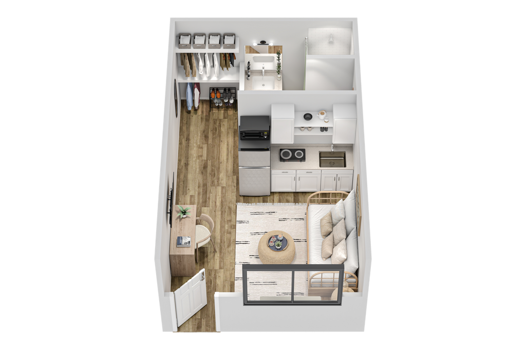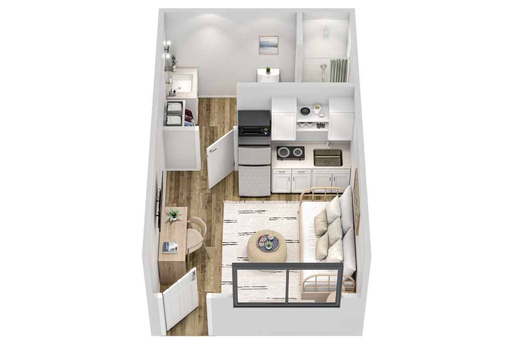 Estudio, 1 Baño, 480 pies²El más grandeEsta opción tiene las unidades más grandes para este modeloGalería del Modelo