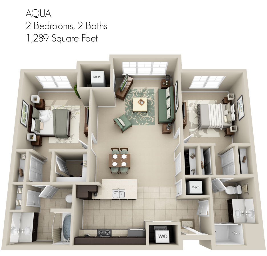 Modelo de apartamento: Blue WaterLlame para Precios1 Dormitorio, 1 Baño, 760 sq ftNo Disponible![]()