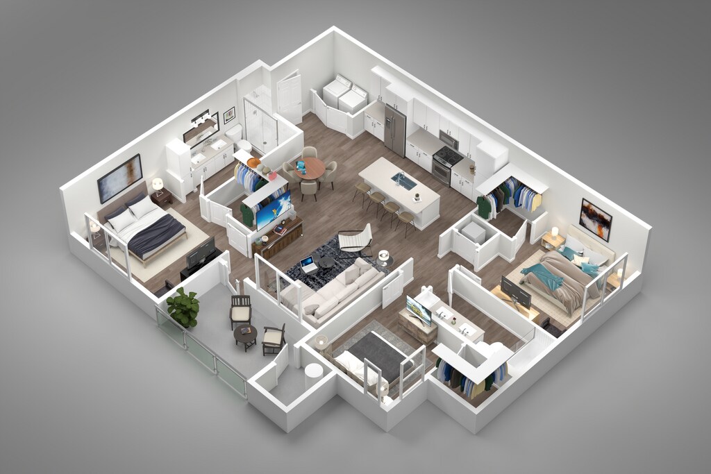 Modelo de apartamento: 3 Bed/2 Bath3 Dormitorios, 2 Baños, 1288 sq ftDisponible Ahora![]()