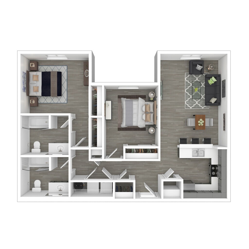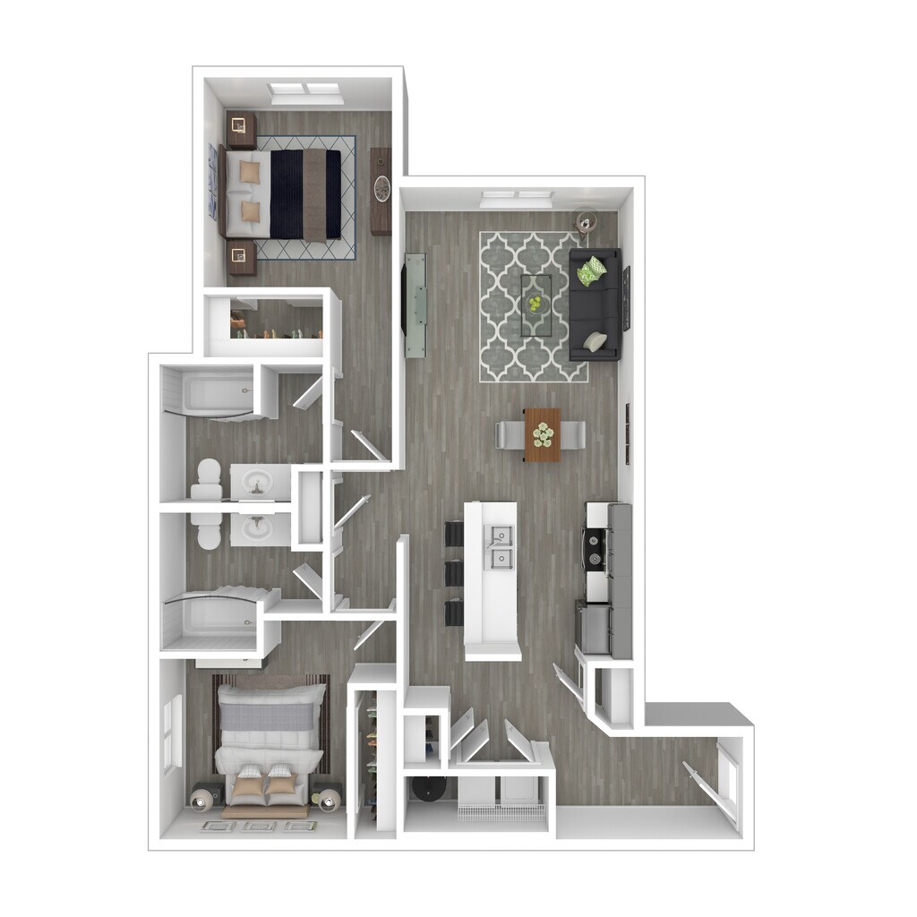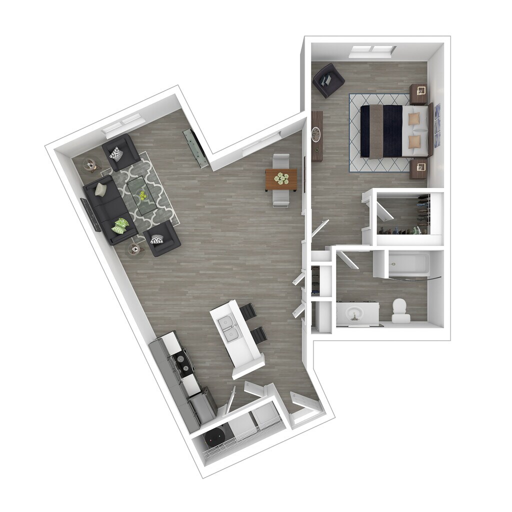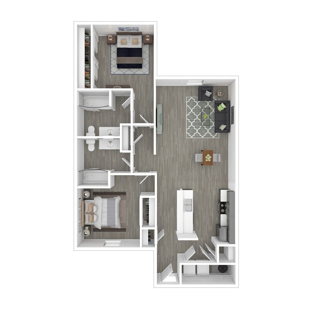 Modelo de apartamento: 1x1-670Desde $1,2991 Dormitorio, 1 Baño, 670 sq ftDisponible Ahora![]()
