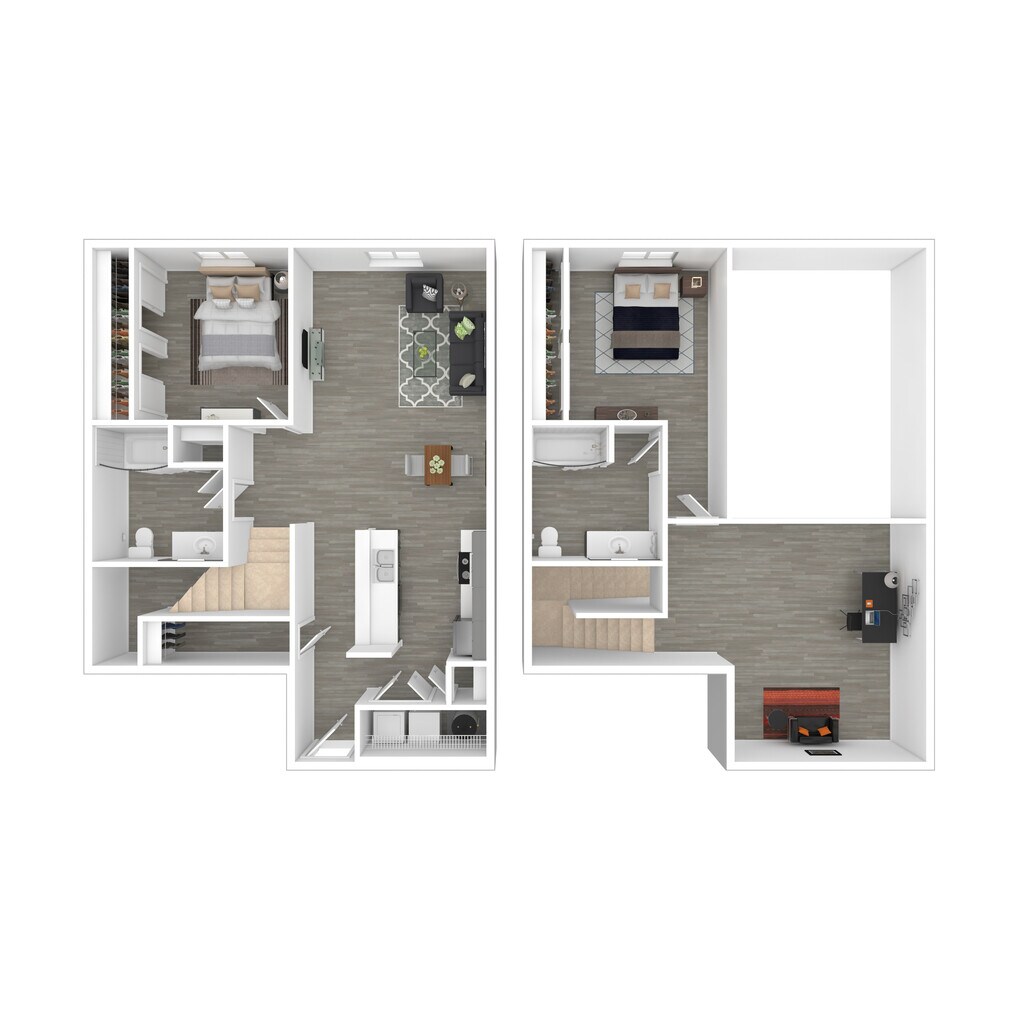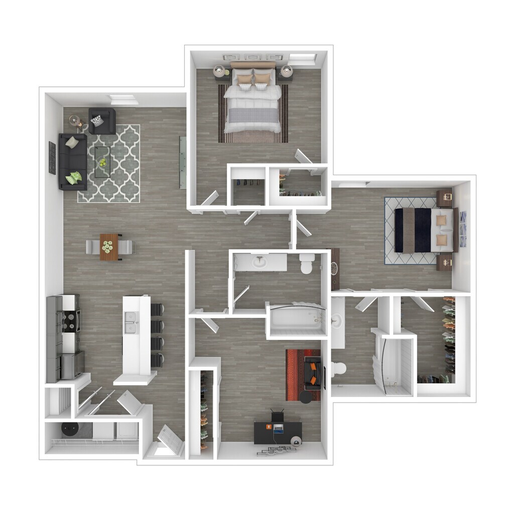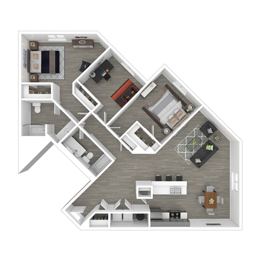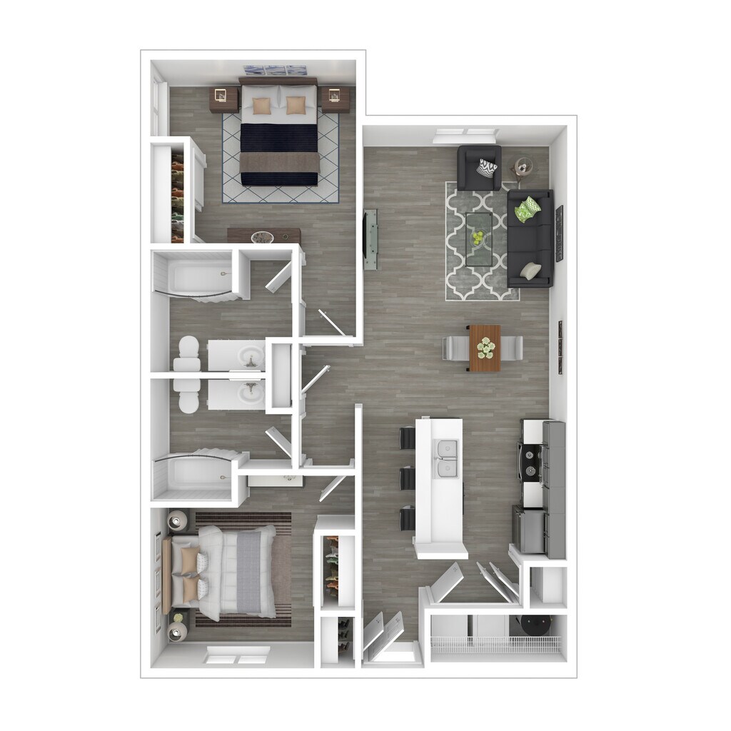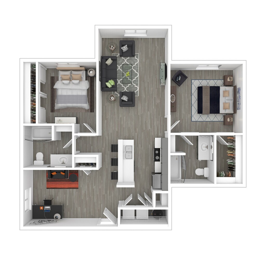 Modelo de apartamento: 1x1-670Desde $1,2991 Dormitorio, 1 Baño, 670 sq ftDisponible Ahora![]()
