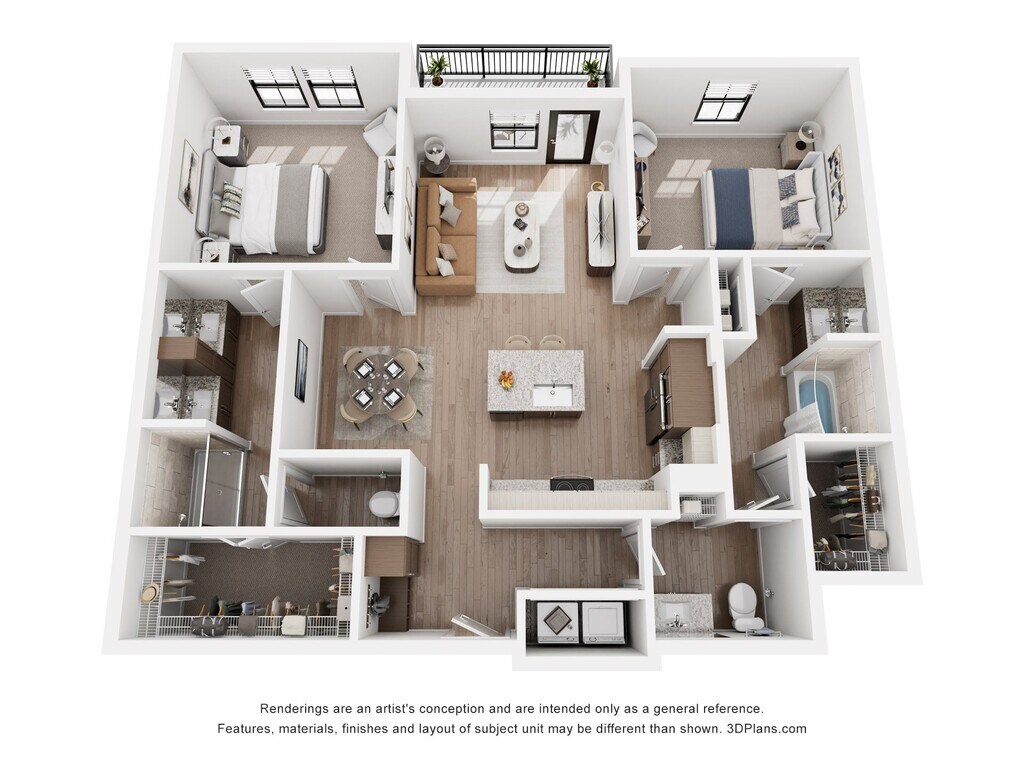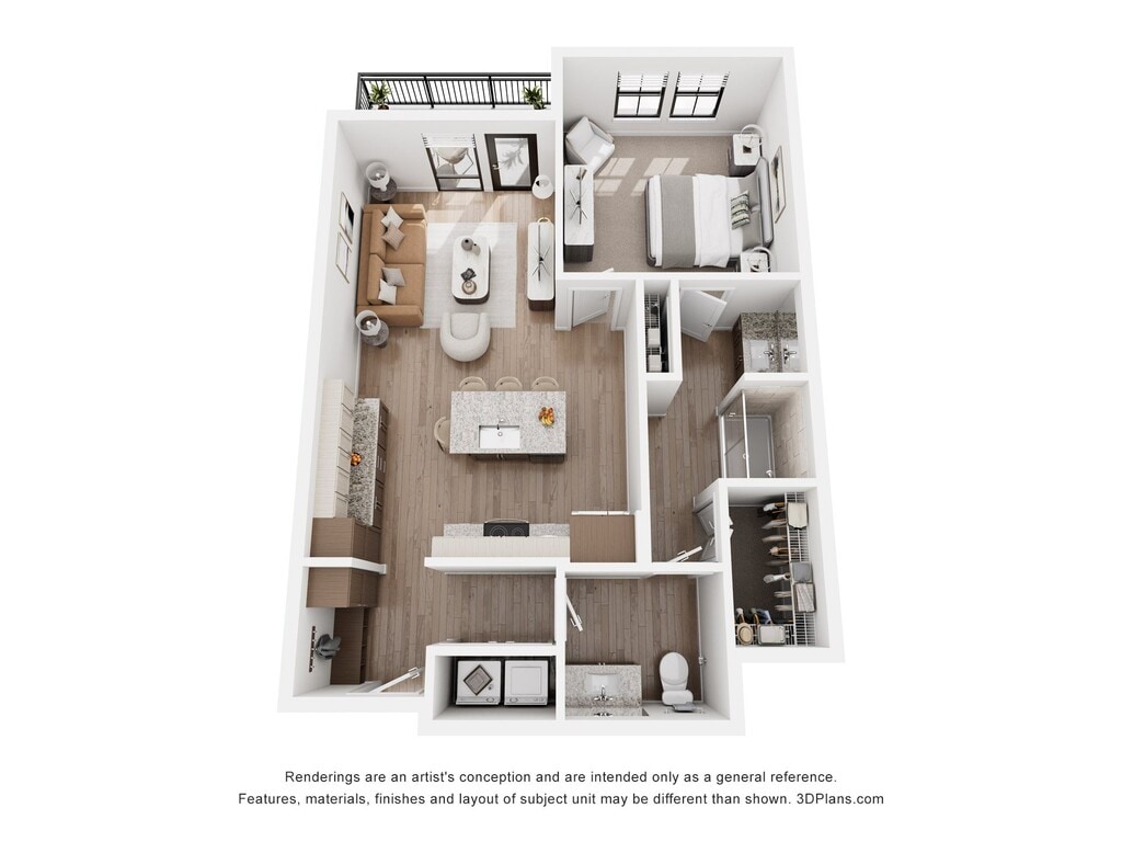 Modelo de apartamento: A1Desde $1,9301 Dormitorio, 1 Baño, 726 sq ftDisponible Ahora![]()
