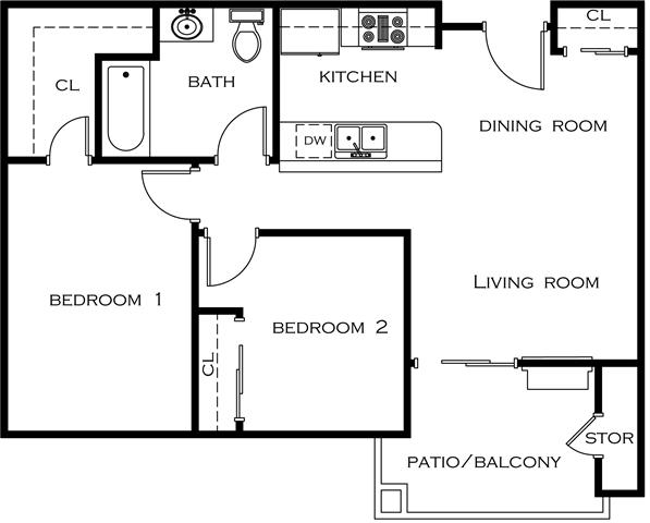 Modelo de apartamento: Plan B2 Dormitorios, 1 Baño, 700 sq ftNo Disponible![]()