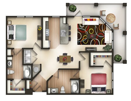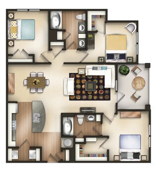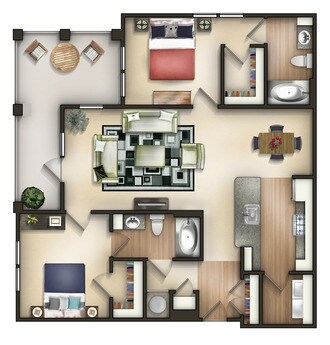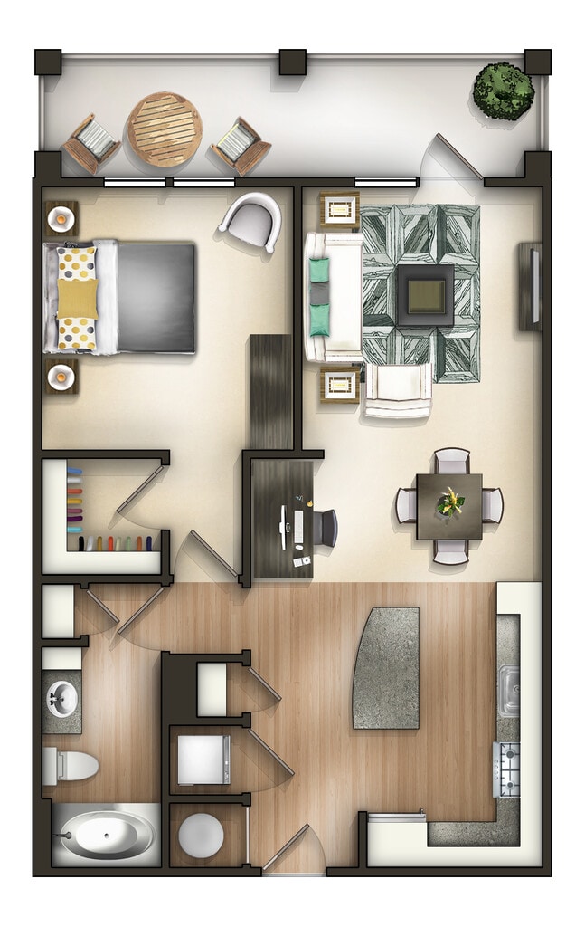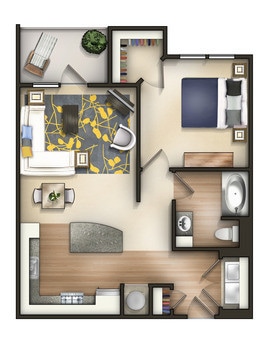 Modelo de apartamento: A1ADesde $1,8061 Dormitorio, 1 Baño, 626 sq ftDisponible Ahora![]()