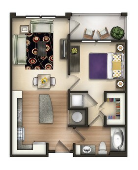 1 Dormitorio, 1 Baño, 626 pies²Disponible AhoraGalería del Modelo