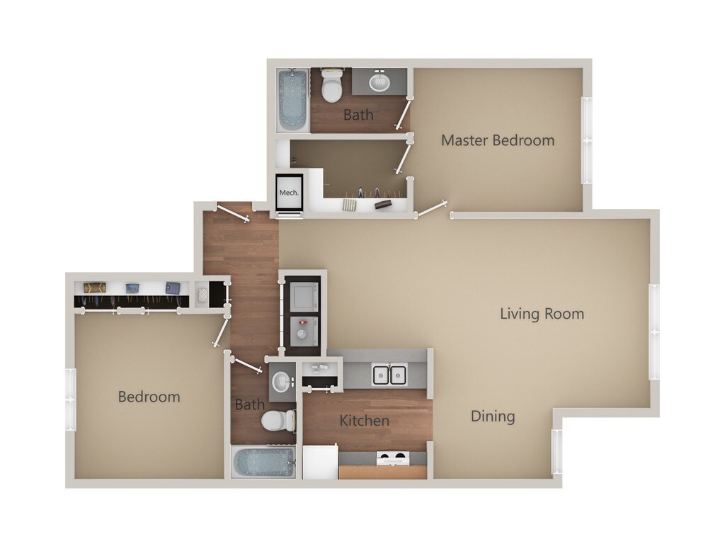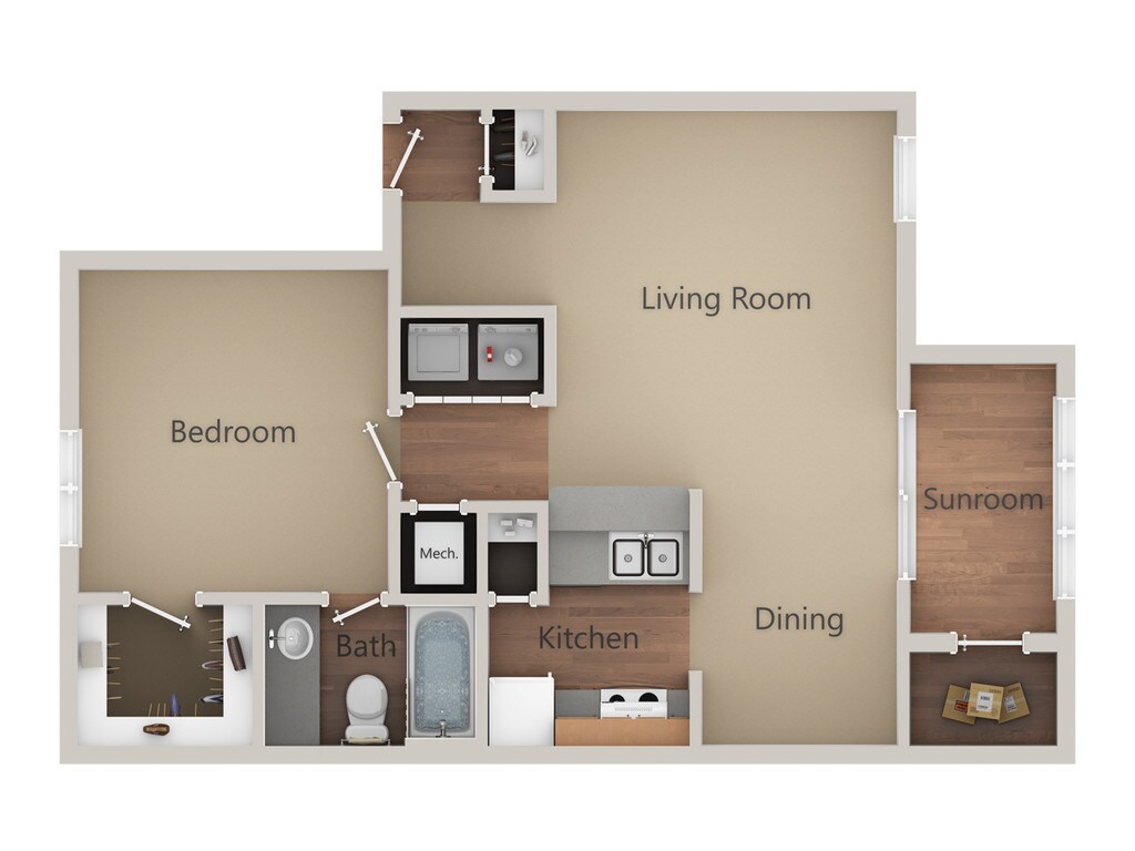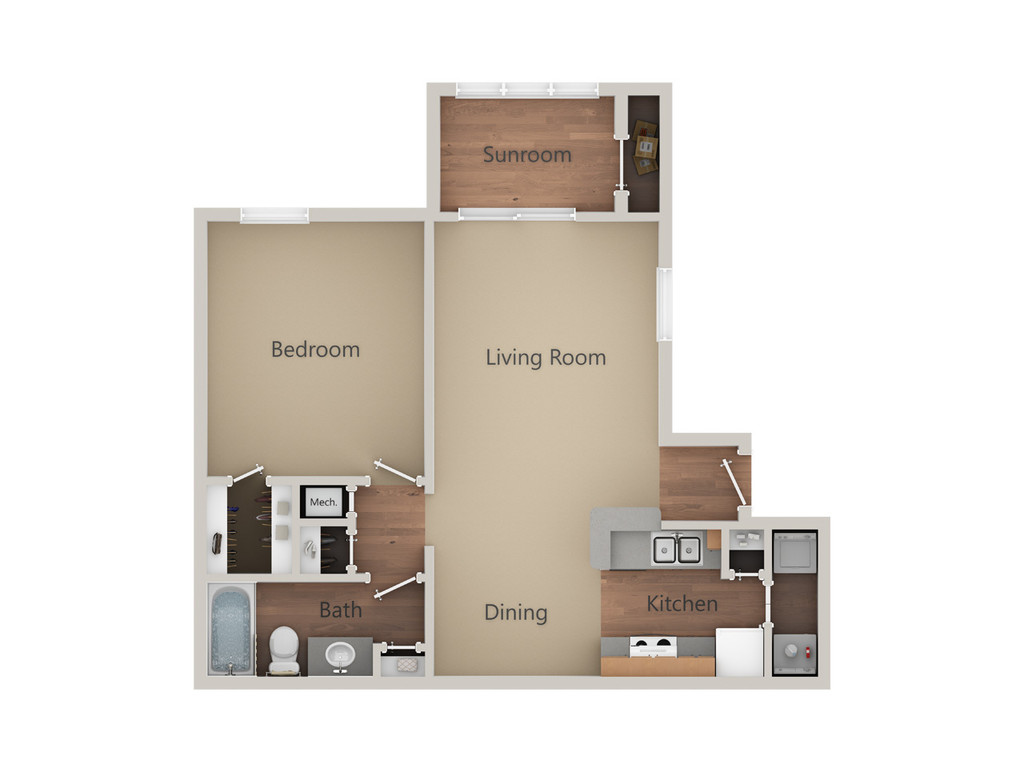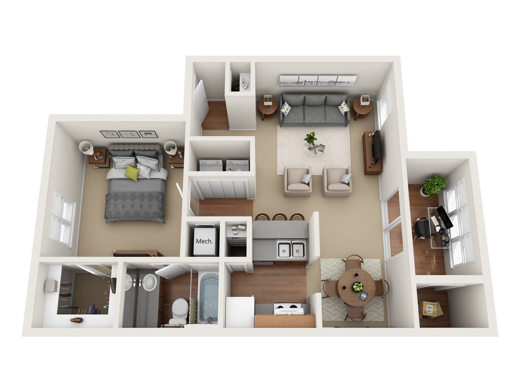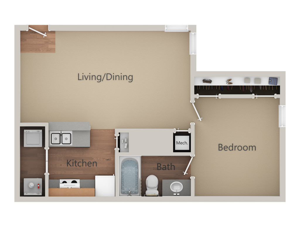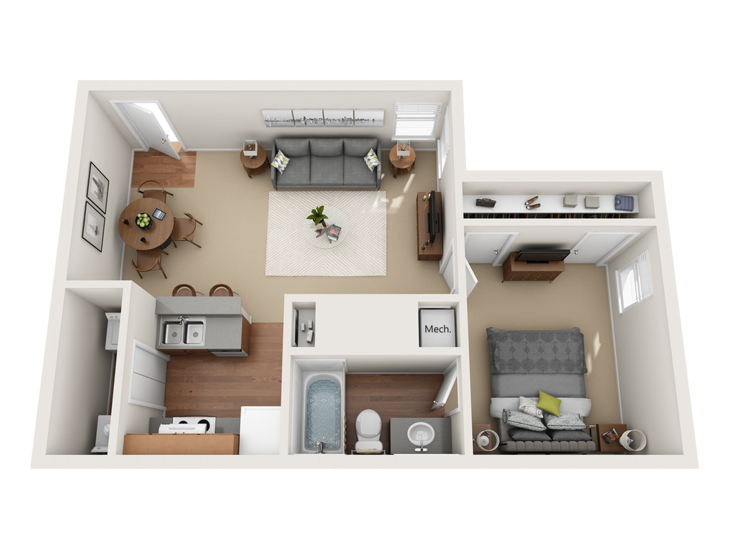 1 Dormitorio, 1 Baño, 750 pies²Disponible AhoraGalería del Modelo