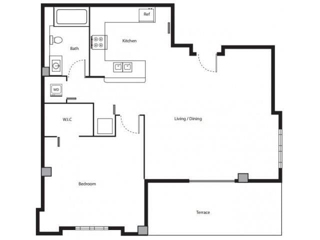 Modelo de apartamento: Sierra_2Llame para PreciosEstudio, 1 Baño, 550 sq ftNo DisponibleLos planos de la planta son una interpretación artística. Todas las dimensiones son aproximadas. Los tamaños o el detalle del producto real y sus especificaciones pueden variar. No todas las características están disponibles en todos los hogares para rentar. Los precios y la disponibilidad están sujetos a cambios. El alquiler que se muestra es mensual. Se pueden aplicar ciertos cargos, por ejemplo, entrega de paquetes, recolección de basura, agua, servicios, etc. Depositos varian. Consulta a un representante para conocer detalles.