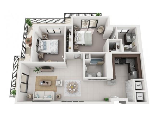 1 Dormitorio, 1 Baño, 832 pies²Disponible AhoraGalería del Modelo