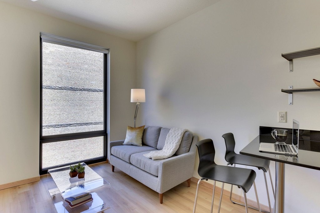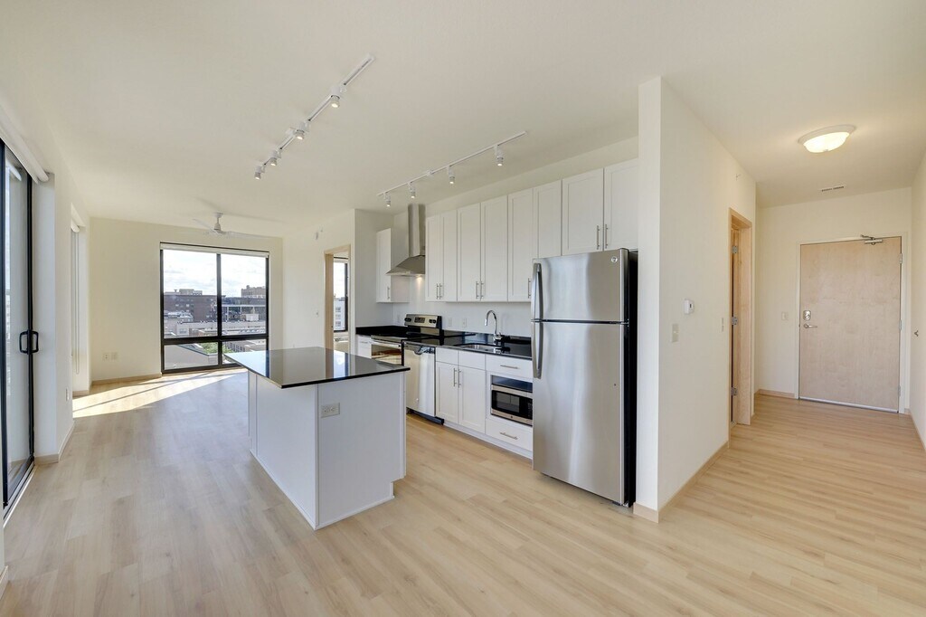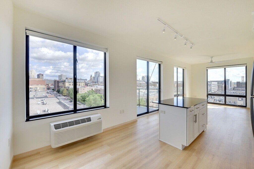Disfruta de la gran cantidad de luz natural, estética moderna de vanguardia, y cercanía a tiendas y senderos naturales. Cada una de las impresionantes edificio presenta compromiso con la artesanía y un moderno diseño que te brinda la más hermosa y dinámica experiencia de alquiler en el centro de Minneapolis. La propiedad no está ubicado sobre la separación, los residentes tienen acceso a comodidades en todos los apartamentos de tres edificios. Es tres gimnasios, tres áreas al aire libre en la azotea además de servicios exclusivos para cada espacio.