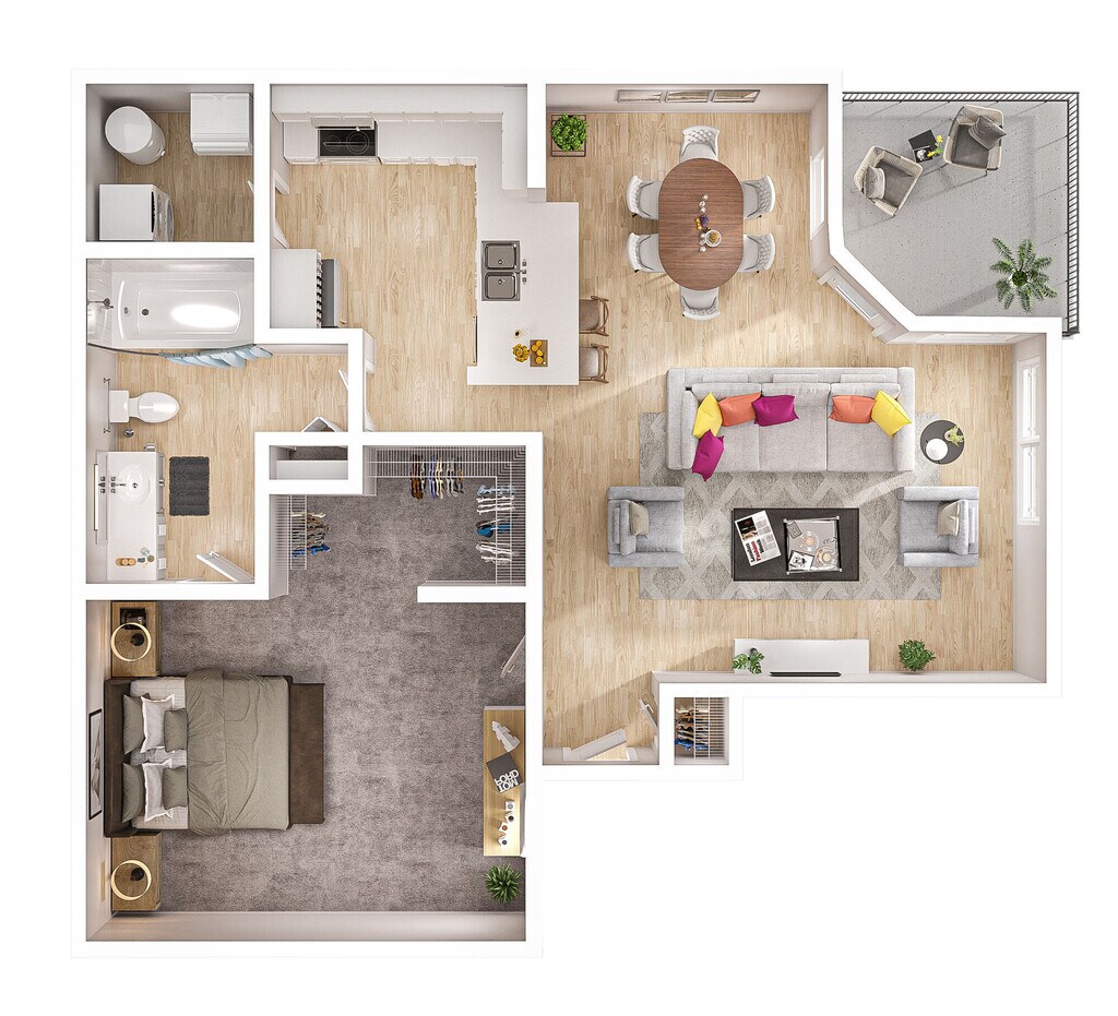 1 Dormitorio, 1 Baño, 800 pies²Precio Mensual TotalDisponible AhoraGalería del Modelo