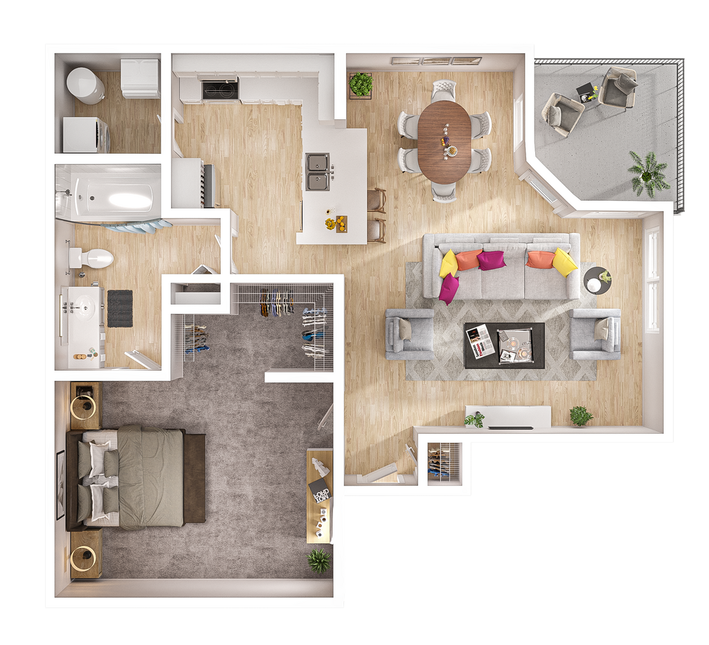 Modelo de apartamento: Valencia DLlame para Precios1 Dormitorio, 1 Baño, 800 sq ftNo Disponible![]()