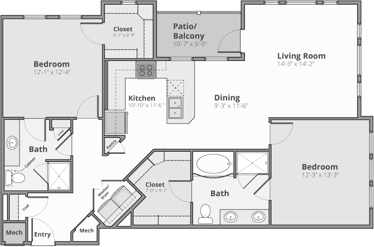 Modelo de apartamento: PinnacleDesde $1,4781 Dormitorio, 1 Baño, 698 sq ftDisponible Ahora![]()