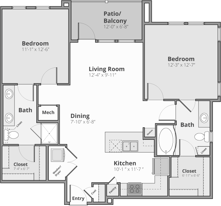 1 Dormitorio, 1 Baño, 698 pies²Disponible AhoraGalería del Modelo