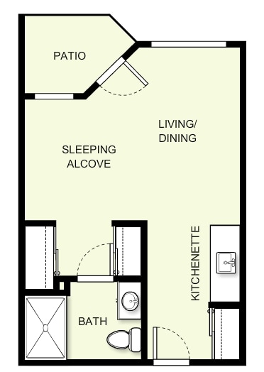 Studio, 1 bath