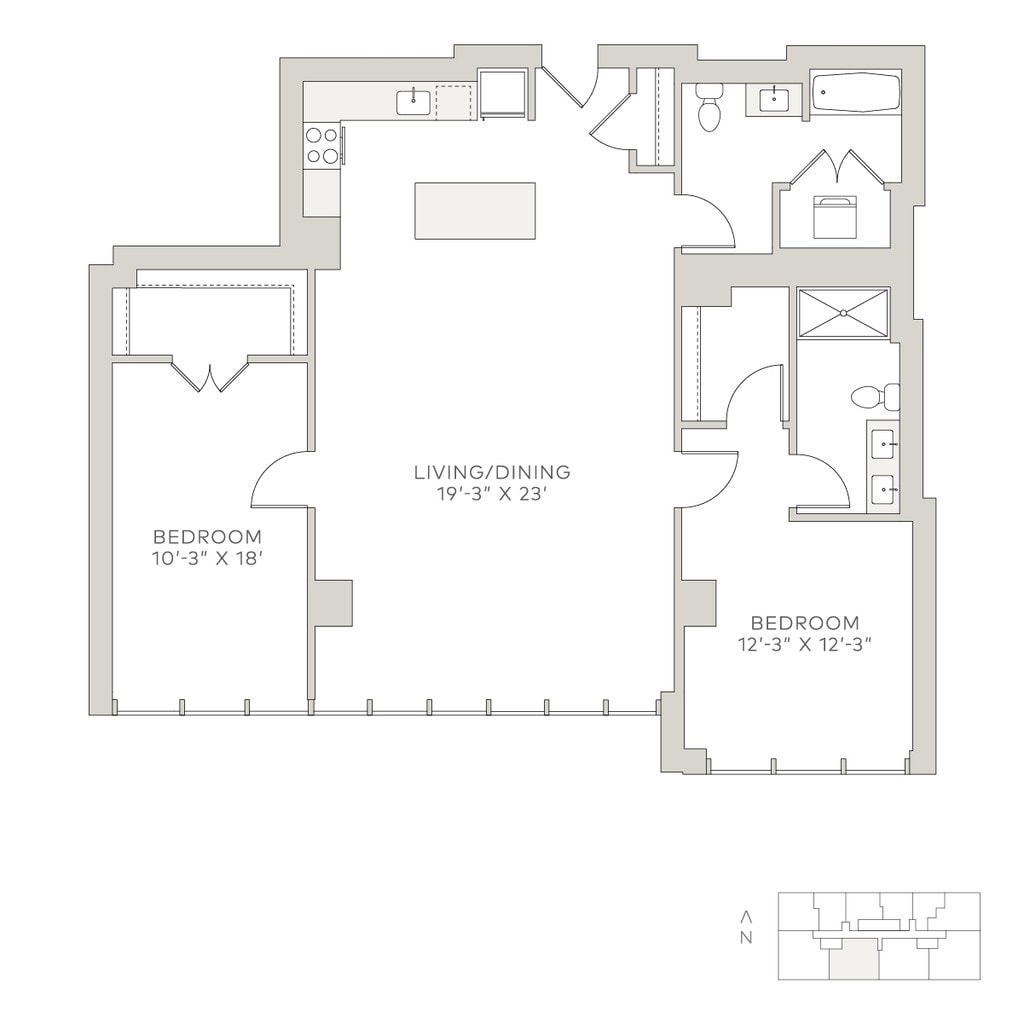 1 Dormitorio, 1 Baño, 883 pies²Disponible AhoraEl más grandeEsta opción tiene las unidades más grandes para este modeloGalería del Modelo