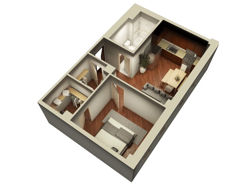 Estudio, 1 Baño, 606 pies²El más grandeEsta opción tiene las unidades más grandes para este modeloGalería del Modelo