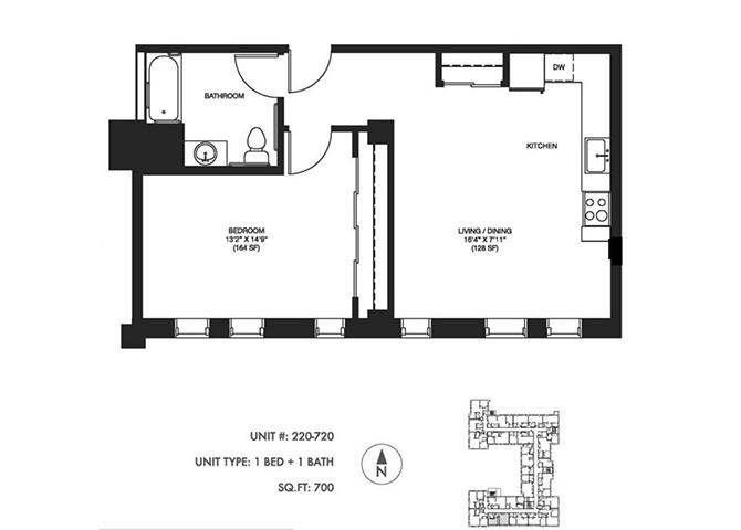 1 Dormitorio, 1 Baño, 700 pies²Galería del Modelo