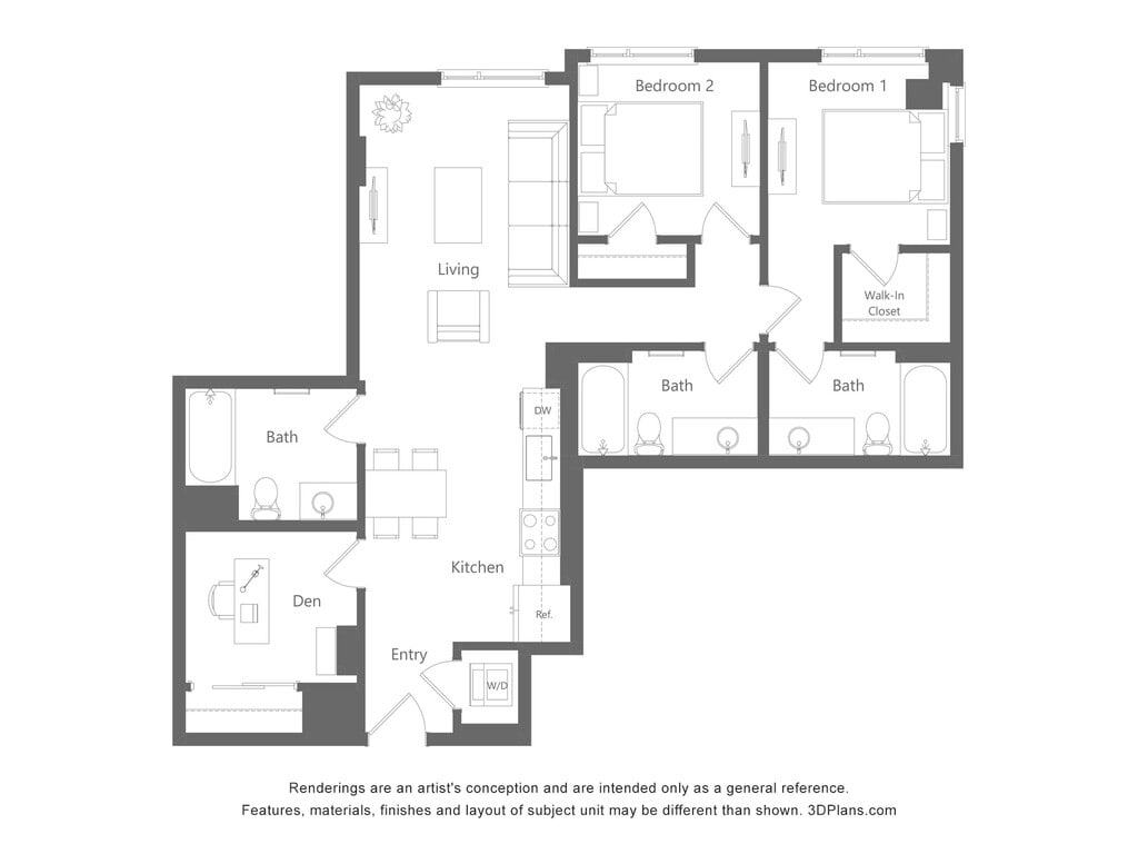 Modelo de apartamento: 1 Bed 1 Bath +Den - 857 sqft$2,6031 Dormitorio, 1 Baño, 857 sq ftDisponible Ahora![]()