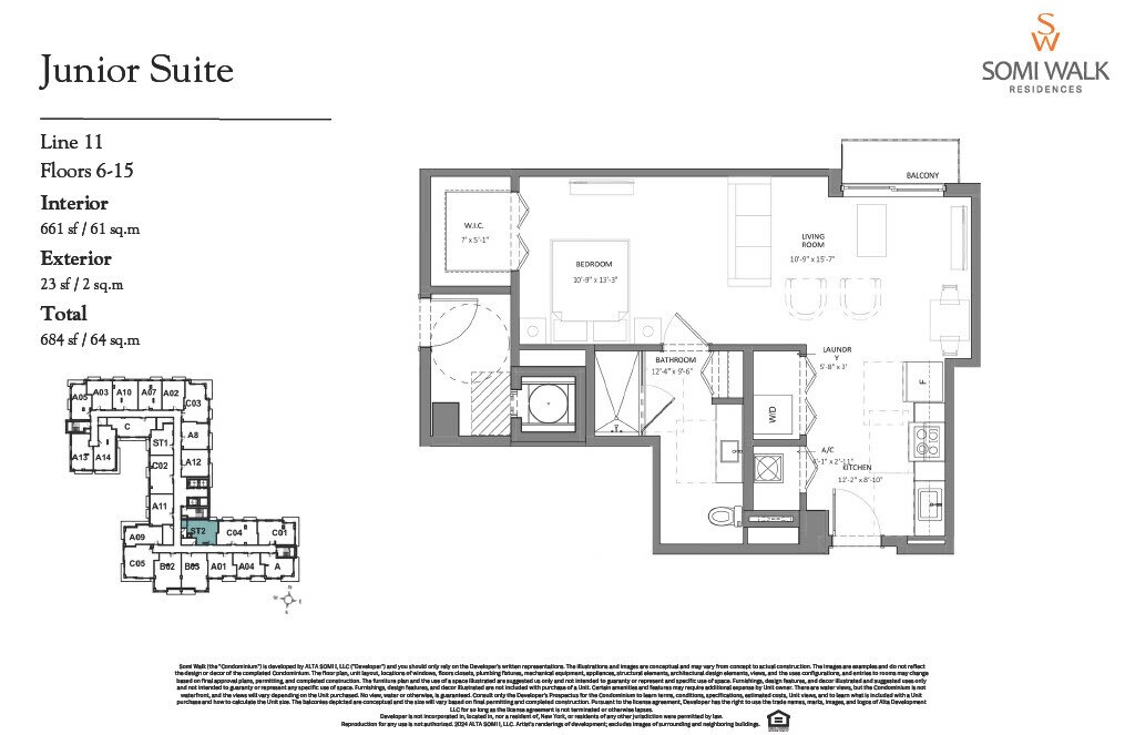 Modelo de apartamento: Junior SuiteEstudio, 1 Baño, 661 sq ftNo DisponibleJunior Suite - Plano 1 1 Dormitorio