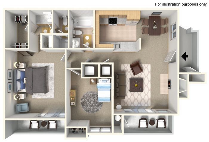 Two Bedroom Two Bathroom - Plano 1 2 Bedroom Remodel