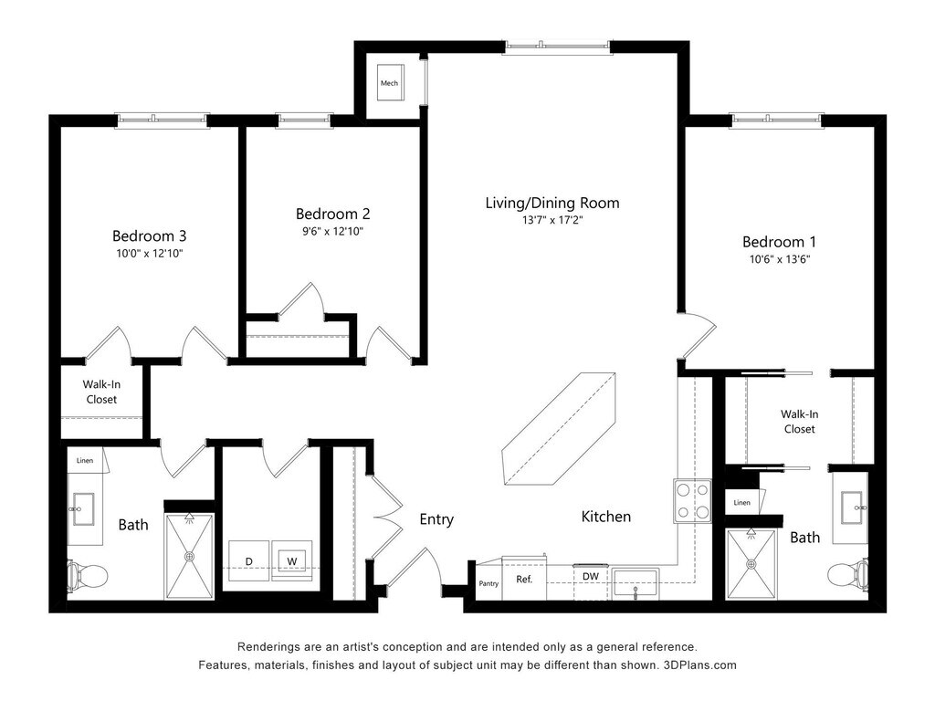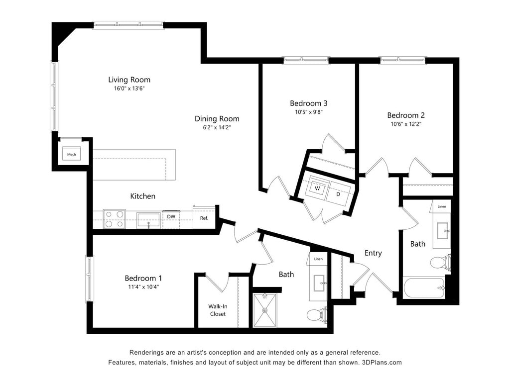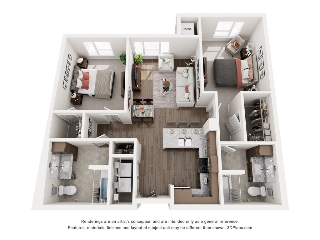 Modelo de apartamento: B2Llame para Precios2 Dormitorios, 2 Baños, 1021 sq ftNo Disponible![]()