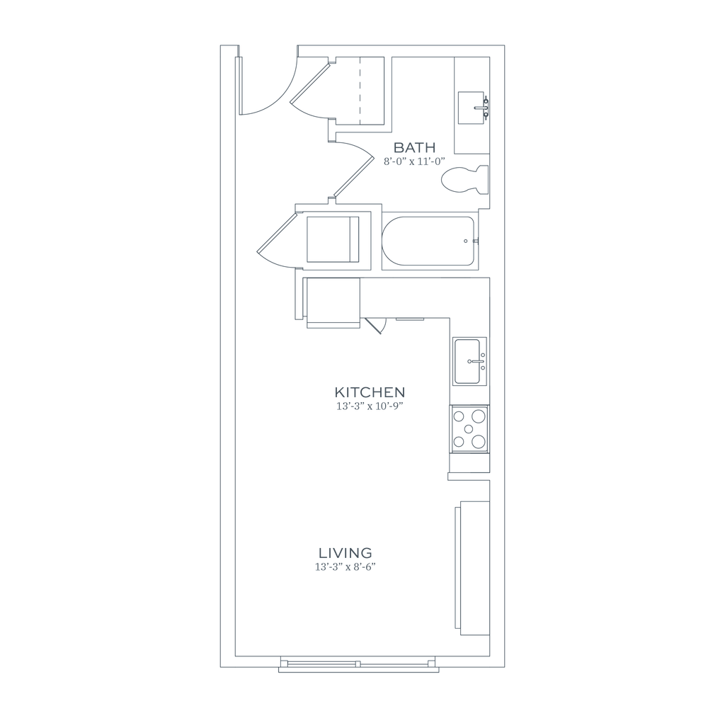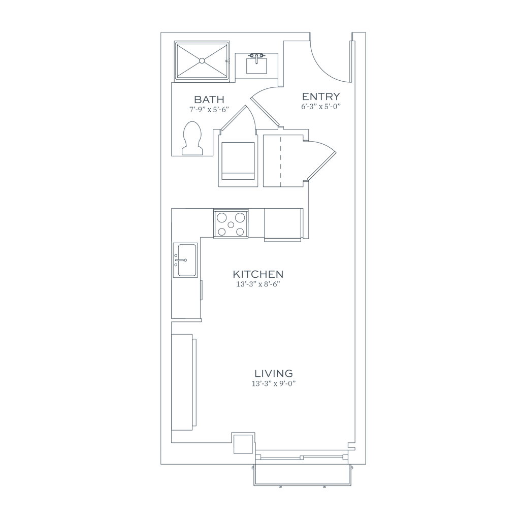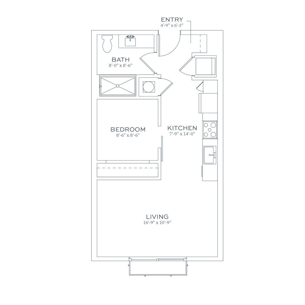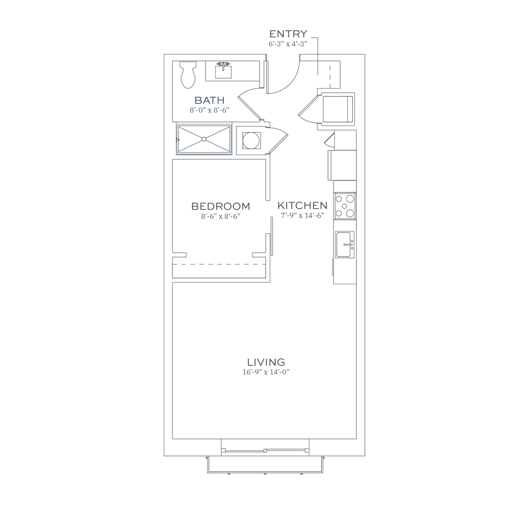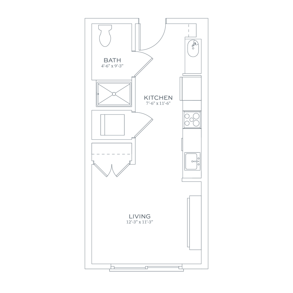 Estudio, 1 Baño, 446 pies²Disponible May 1, 2026Galería del Modelo