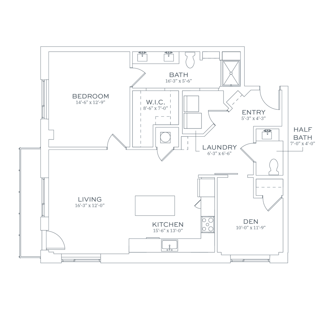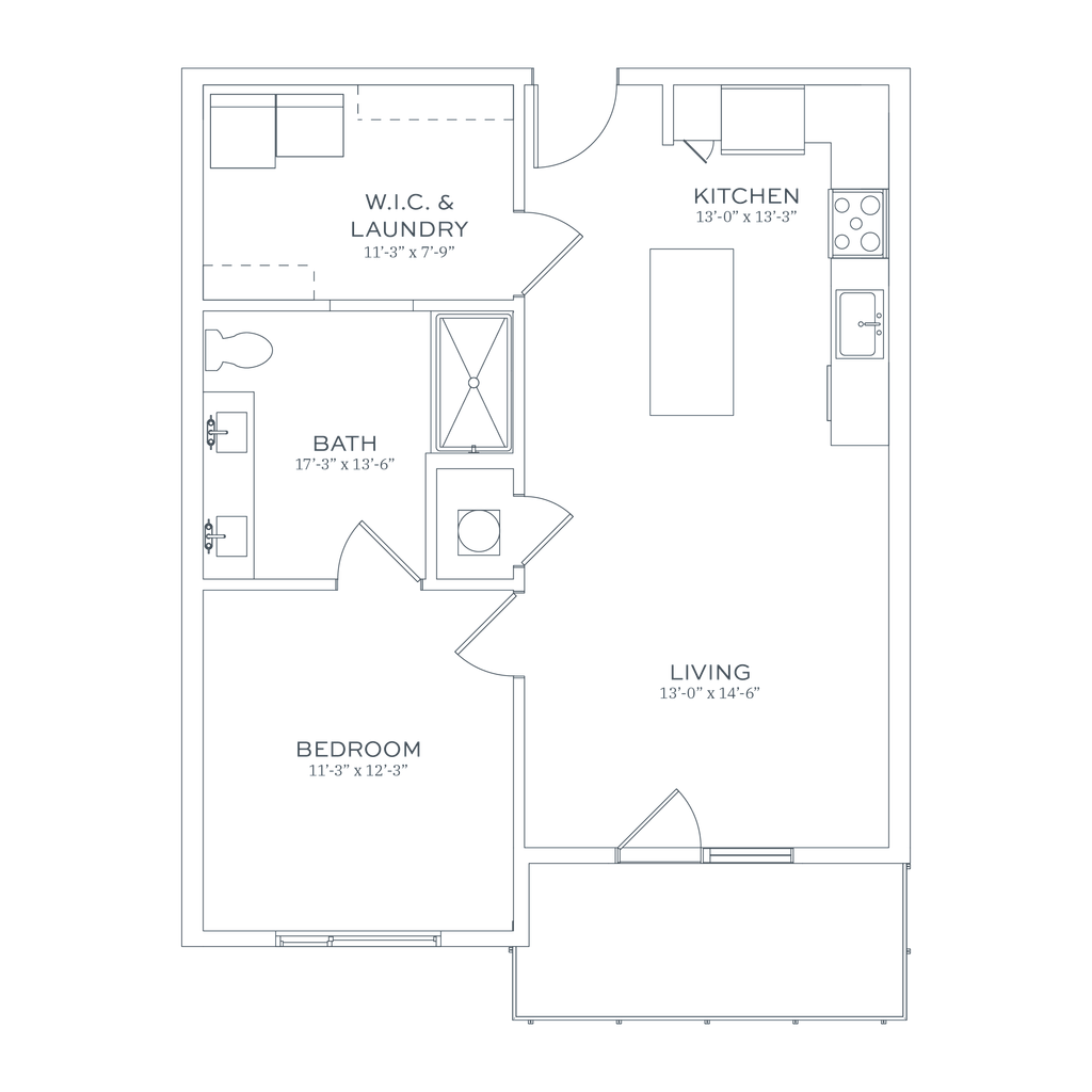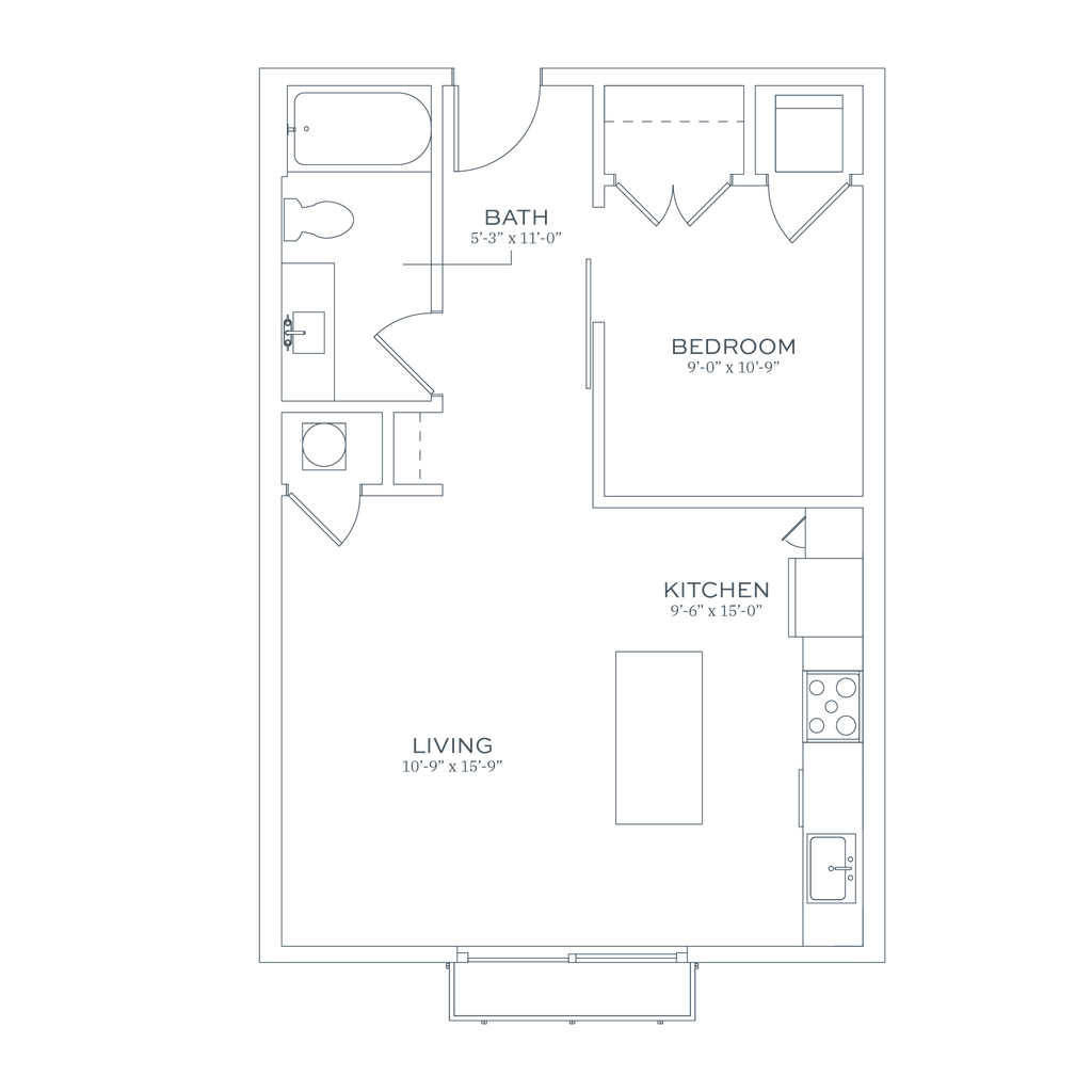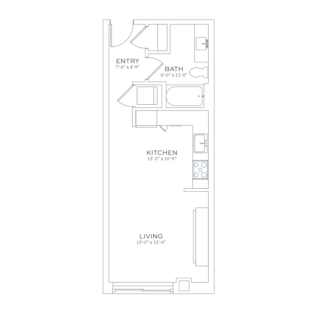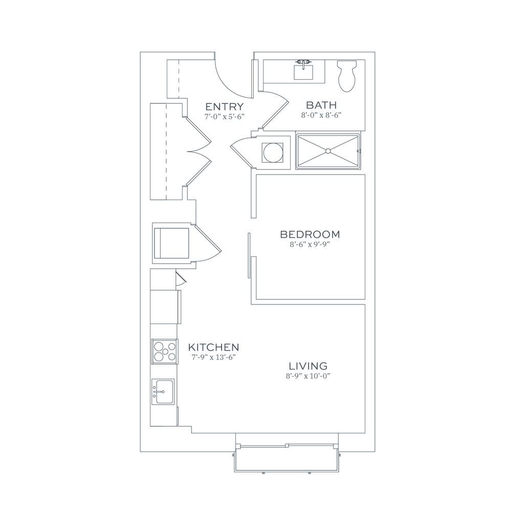 Estudio, 1 Baño, 446 pies²Disponible May 1, 2026Galería del Modelo