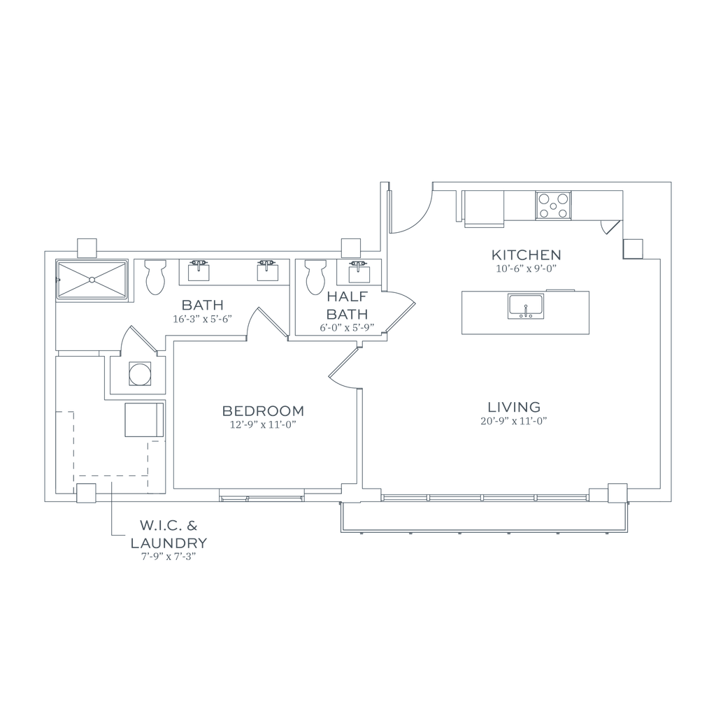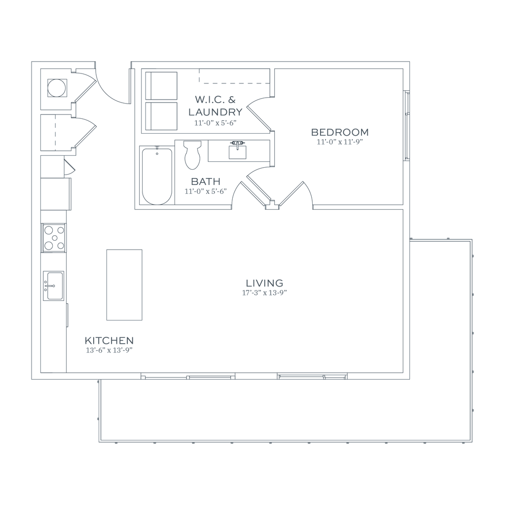 Estudio, 1 Baño, 381 pies²Disponible May 1, 2026Galería del Modelo