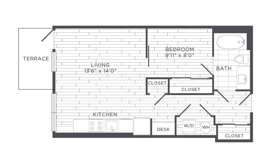 Modelo de apartamento: Studio$2,080Estudio, 1 Baño, 446 sq ftDisponible AhoraLos planos de la planta son una interpretación artística. Todas las dimensiones son aproximadas. Los tamaños o el detalle del producto real y sus especificaciones pueden variar. No todas las características están disponibles en todos los hogares para rentar. Los precios y la disponibilidad están sujetos a cambios. El alquiler que se muestra es mensual. Se pueden aplicar ciertos cargos, por ejemplo, entrega de paquetes, recolección de basura, agua, servicios, etc. Depositos varian. Consulta a un representante para conocer detalles.