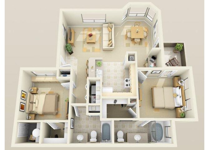 2 Dormitorios, 2 Baños, 1163 pies²Disponible AhoraGalería del Modelo