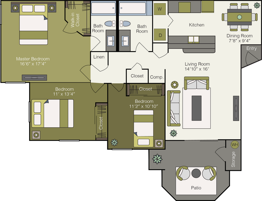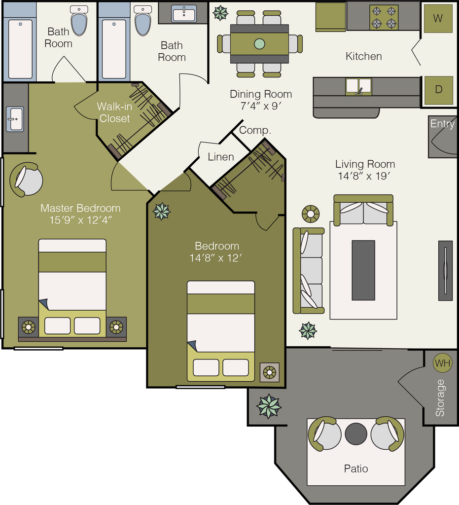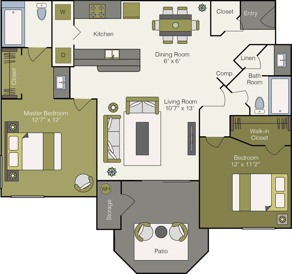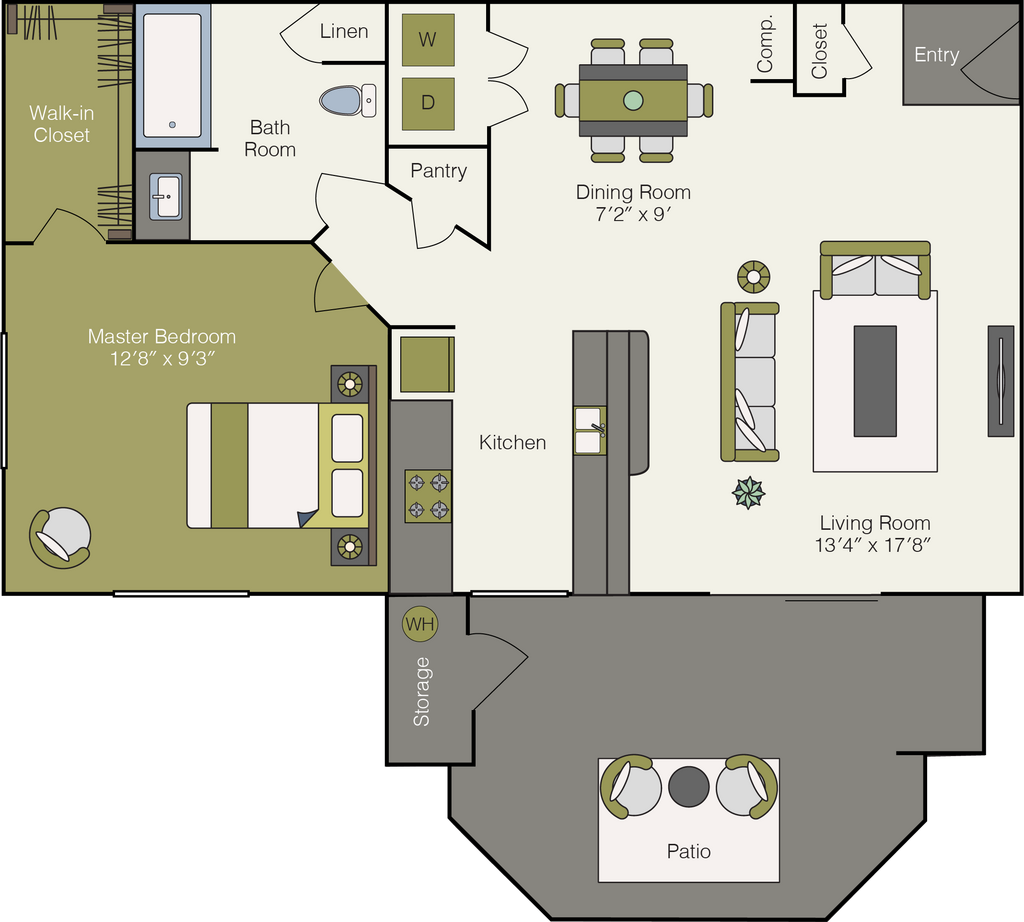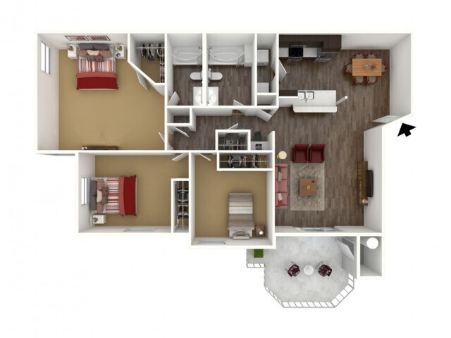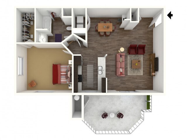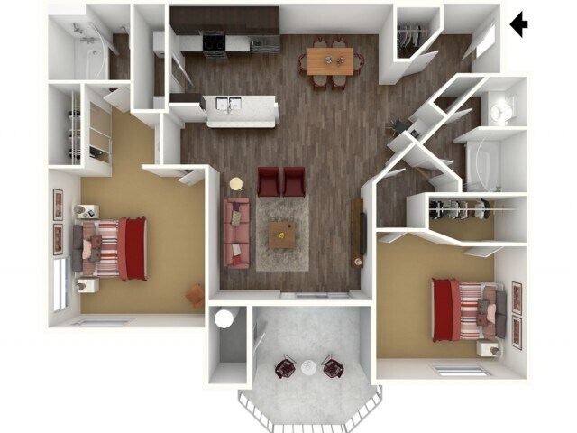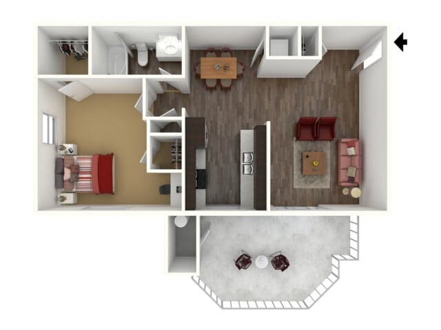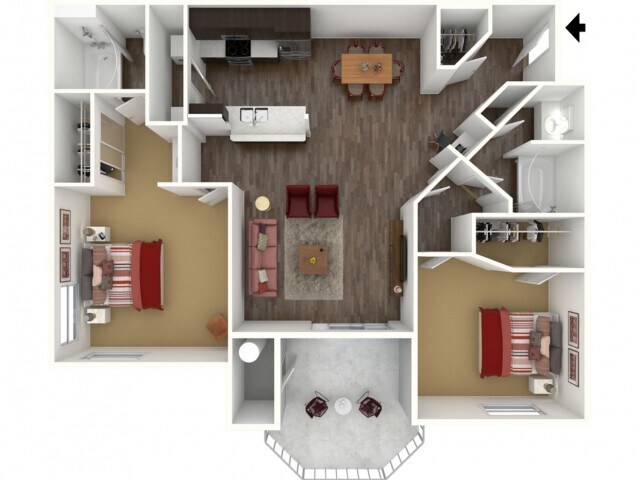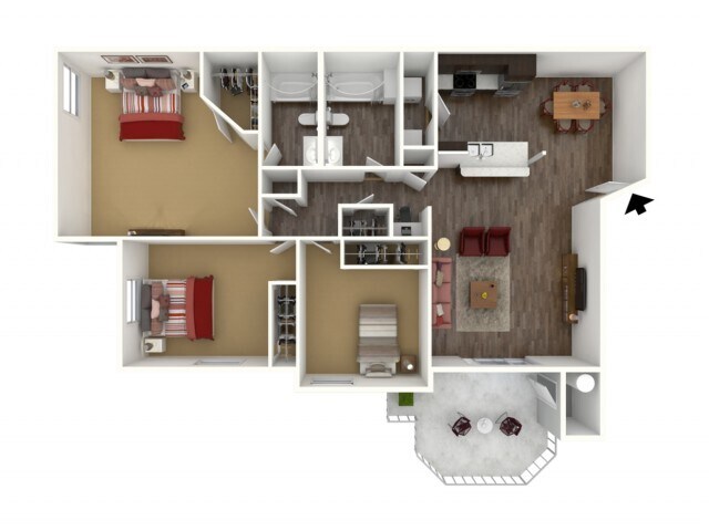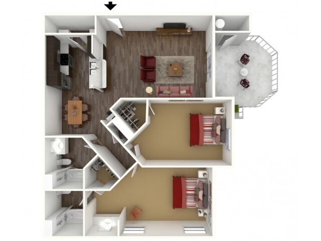 Modelo de apartamento: MerlotDesde $1,2791 Dormitorio, 1 Baño, 740 sq ftDisponible Ahora![]()