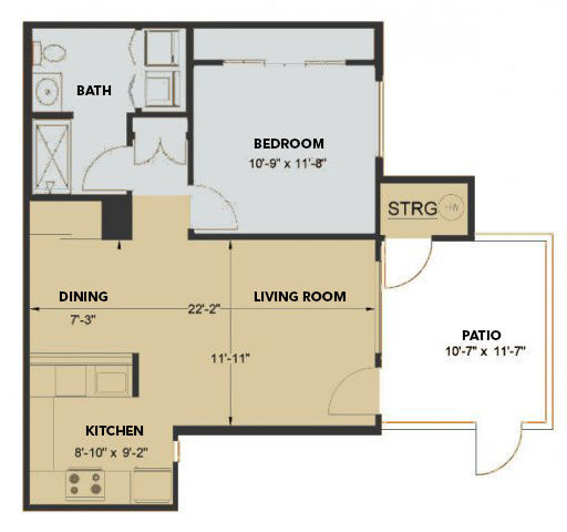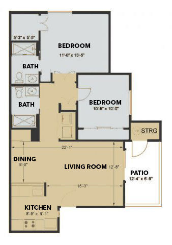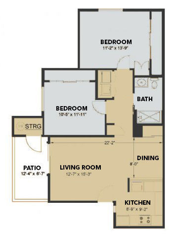 Modelo de apartamento: Two Bedroom One Bath2 Dormitorios, 1 Baño, 995 sq ftNo Disponible![]()